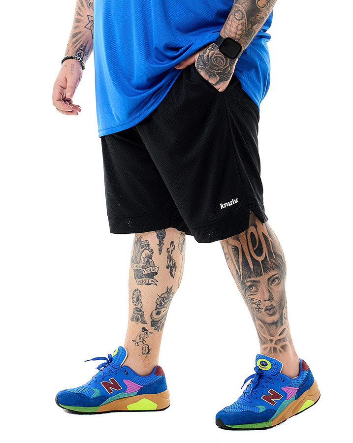 Os dois bolsos frontais e um bolso traseiro embutido adicionam praticidade à peça, permitindo que você carregue seus itens essenciais com facilidade. O detalhe dobrado na barra adiciona um toque de estilo e personalidade, enquanto o logo discreto "knulu" aplicado em branco na perna esquerda reforça o design esportivo e moderno da bermuda.