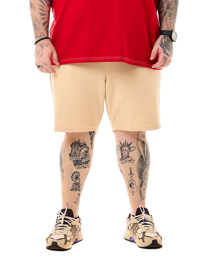 Bermuda Casual Malha Textura Alive Off White Knulu: Descubra a experiência única ao vestir nossa bermuda que combina identidade e atenção em cada detalhe. Confeccionada em 100% algodão com gramatura de 265 g/m², essa peça apresenta um tecido de alta qualidade com uma textura diferenciada, semelhante ao piquê ou trama em microcanais, que confere um toque visual único e agrega valor ao seu look.