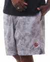 Toda a peça possui uma estampa em textura cinza, proporcionando um visual único e contemporâneo. A sutil aplicação vermelha do "k" da Knulu estilizado adiciona um toque de autenticidade e personalidade à bermuda.