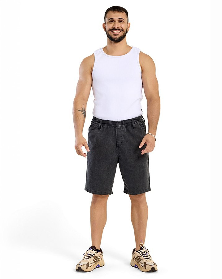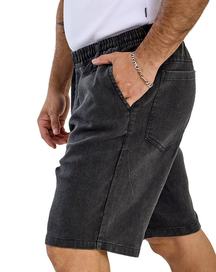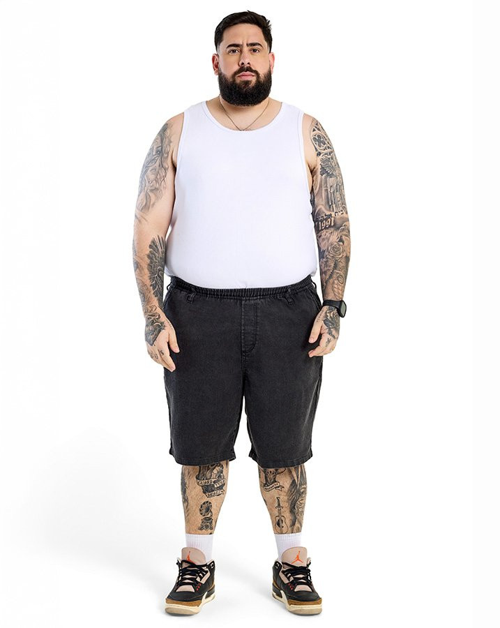 Bermuda Jeans Masculina Moonligth Preto Knulu é aquela peça versátil que entra fácil na rotina e combina com tudo. Feita em jeans com elastano, traz corte clássico e visual preto lavado que deixa a peça mais moderna sem perder a neutralidade. O cós com elástico e cordão de ajuste garante encaixe confortável na cintura, enquanto os bolsos laterais e o bolso traseiro dão o suporte que você precisa para carregar o essencial. Perfeita para quem quer praticidade no dia a dia, funciona bem com regata, camiseta básica ou camisa aberta e tênis casual.