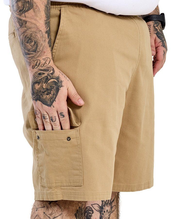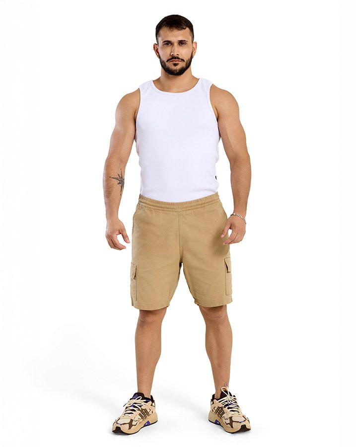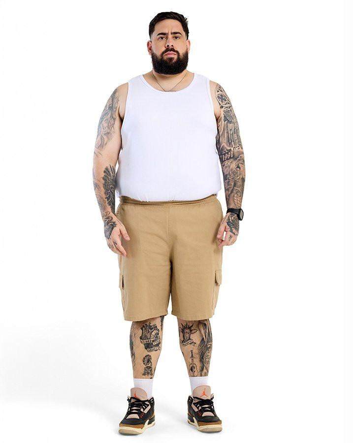 A Bermuda Sarja Cargo Casual Oregon Bege Knulu apresenta um corte clássico aliado ao visual versátil da sarja em tom bege. O tecido tem toque encorpado, leve elasticidade e caimento estruturado, trazendo firmeza sem perder a mobilidade. A cintura com elástico e cordão de ajuste oferece praticidade, enquanto os bolsos laterais, o bolso traseiro e o bolso cargo adicionam função ao design. Uma peça coringa do dia a dia, fácil de combinar com camisetas básicas, regatas ou camisas leves.