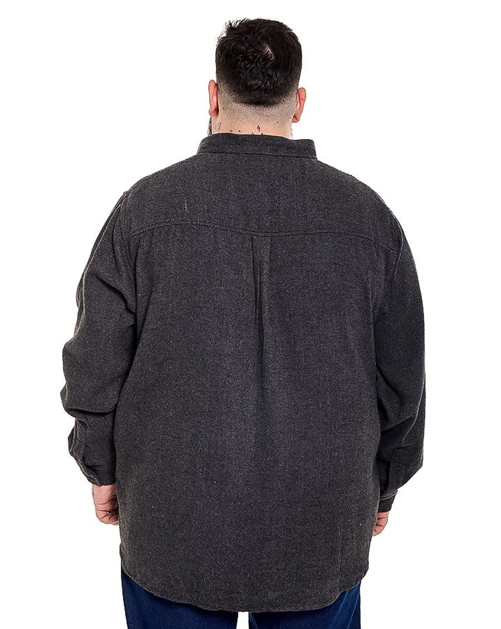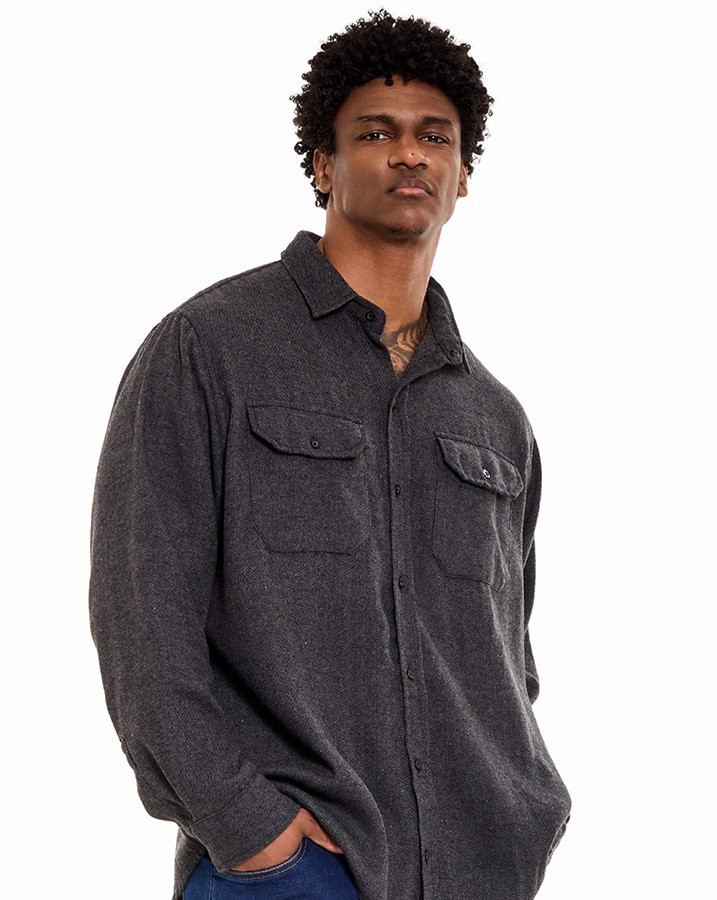 Confeccionada em tecido flanelado encorpado, oferece conforto térmico com toque macio e agradável. A textura pesada valoriza o caimento da peça e garante presença no look, enquanto o tom chumbo facilita combinações versáteis com calças jeans, cargo ou sobre camisetas básicas.