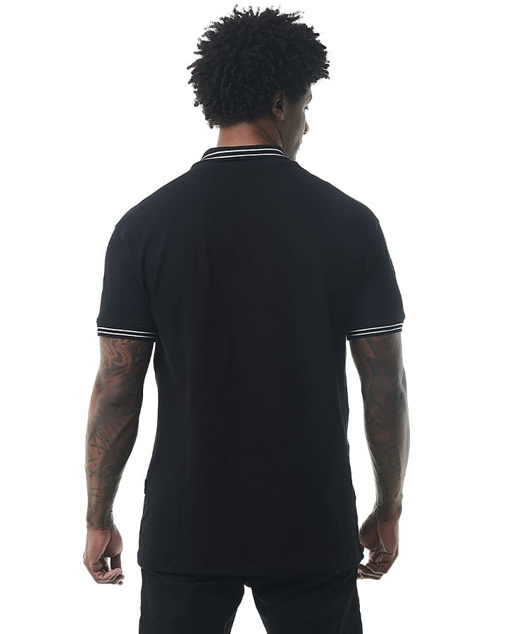 A gola desta Camisa Pólo possui o mesmo padrão da manga e três botões, permitindo que você ajuste o nível de formalidade de acordo com sua preferência. Crie um visual mais casual com os botões desabotoados ou um visual mais elegante mantendo-os fechados.