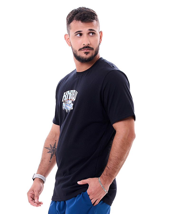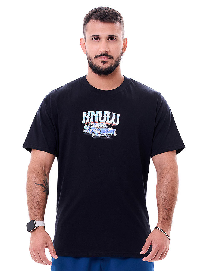 A malha leve e resistente proporciona toque macio e durabilidade, mesmo com uso constante. A arte centralizada no peito traz um carro estilizado em meio ao logo Knulu, destacando referências urbanas e de cultura de rua com personalidade marcante.