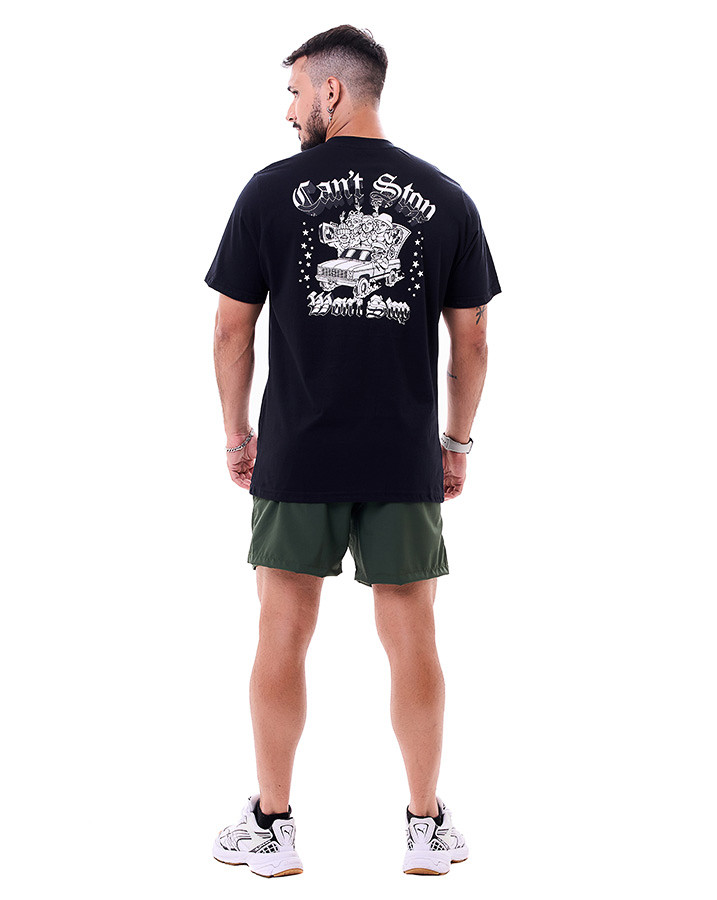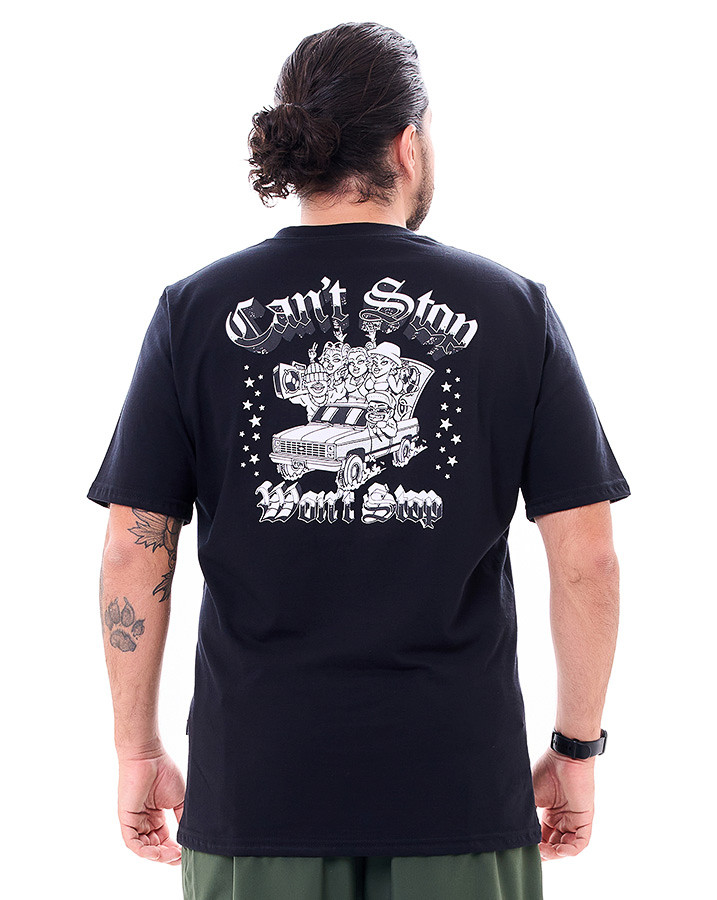 Confeccionada em malha macia e resistente, oferece toque suave e excelente durabilidade. O destaque da peça fica por conta da arte nas costas, com traços em estilo urbano e elementos gráficos que remetem a festas de rua e cultura alternativa.