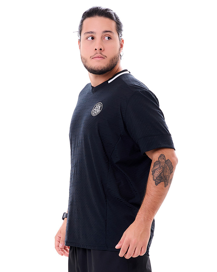 Camiseta Dry-Fit Jacquard Geometric Preto Knulu: a fusão perfeita entre estilo e desempenho, projetada para quem valoriza conforto e atenção aos detalhes. Confeccionada em Dryfit 100% poliéster, com gramatura de 135 g/m², proporciona leveza, respirabilidade e um toque suave, garantindo bem-estar durante o uso.