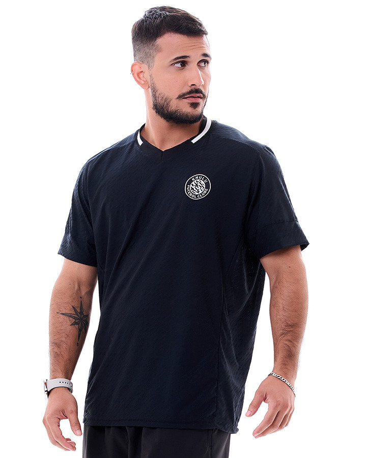 A Camiseta Dry-Fit Jacquard Geometric Preto Knulu é a escolha ideal para quem busca uma peça versátil, combinando facilmente com bermudas e calças para criar composições urbanas e esportivas, sem abrir mão do conforto e da identidade.