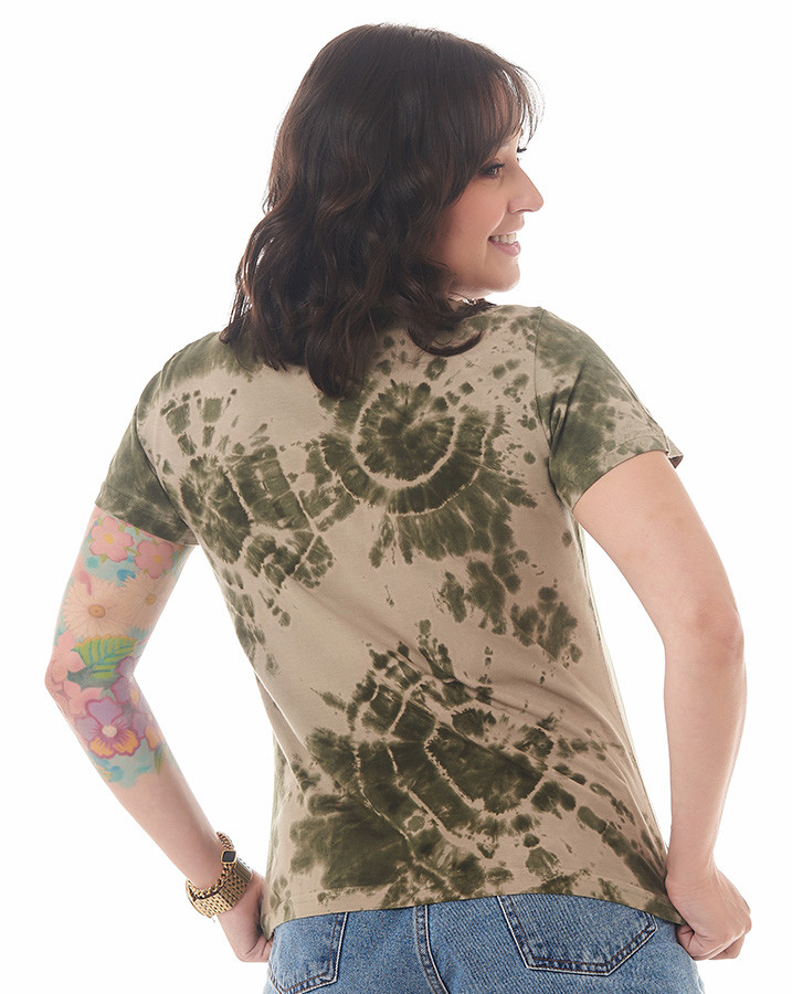 Viva a experiência única e autêntica da Camiseta Feminina Tie-Dye Forest Verde Knulu.