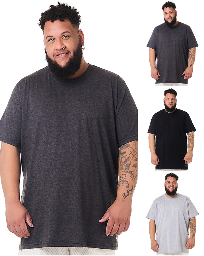 | Tecido | Preta | Branca = 100% algodão Cinza Chumbo = 50% algodão 50% poliéster Cinza Mescla = 88% algodão 12% poliéster |