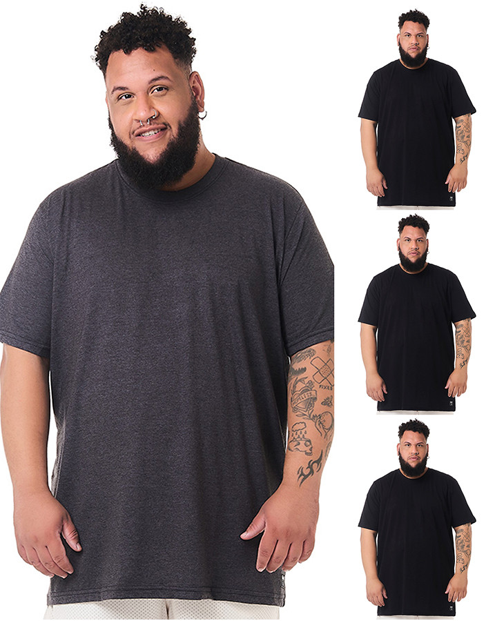 | Tecido | Preta | Branca = 100% algodão Cinza Chumbo = 50% algodão 50% poliéster Cinza Mescla = 88% algodão 12% poliéster |