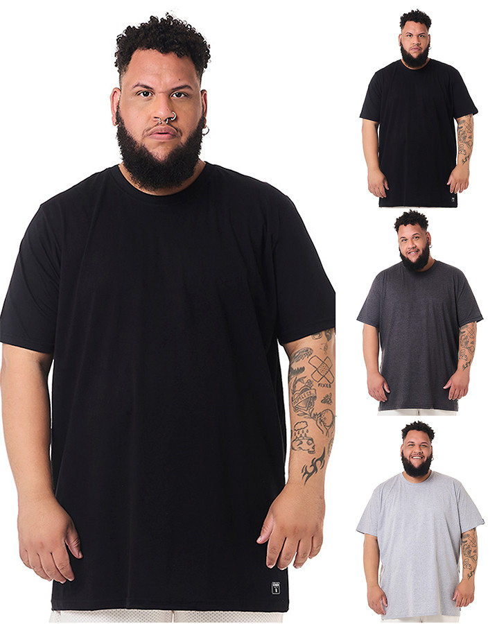 | Tecido | Preta | Branca = 100% algodão Cinza Chumbo = 50% algodão 50% poliéster Cinza Mescla = 88% algodão 12% poliéster |