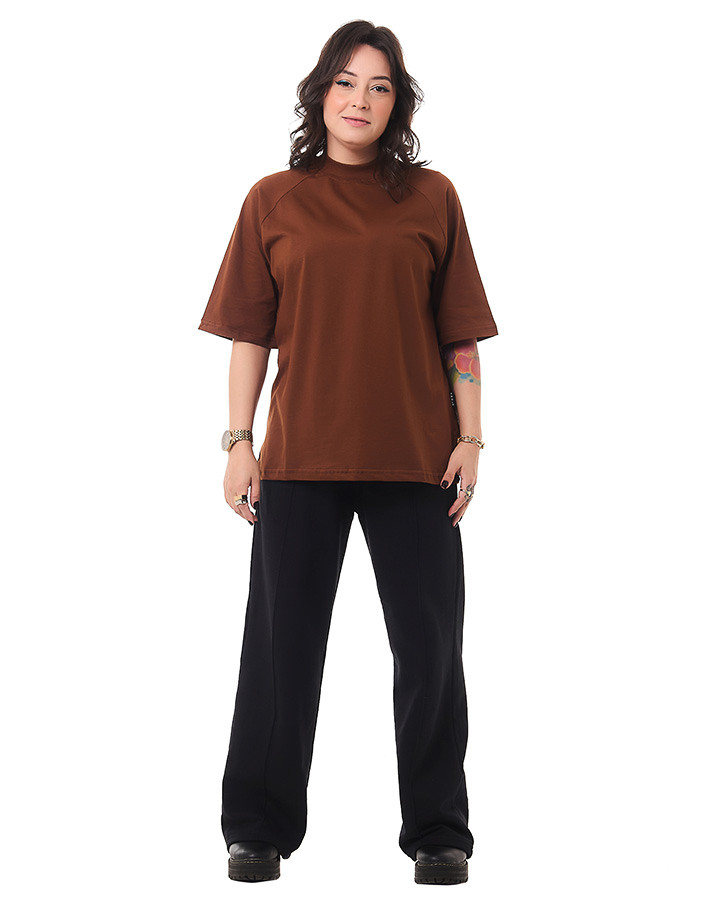 Experimente o conforto e o estilo incomparável da Camiseta Oversized Feminina Gola Alta Basic Marrom Knulu. Feita com malha 100% algodão de alta qualidade, esta peça é pré-lavada para proporcionar a melhor experiência, com um toque suave desde o primeiro uso.