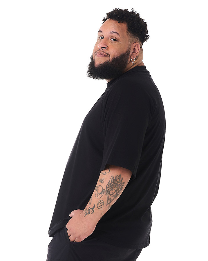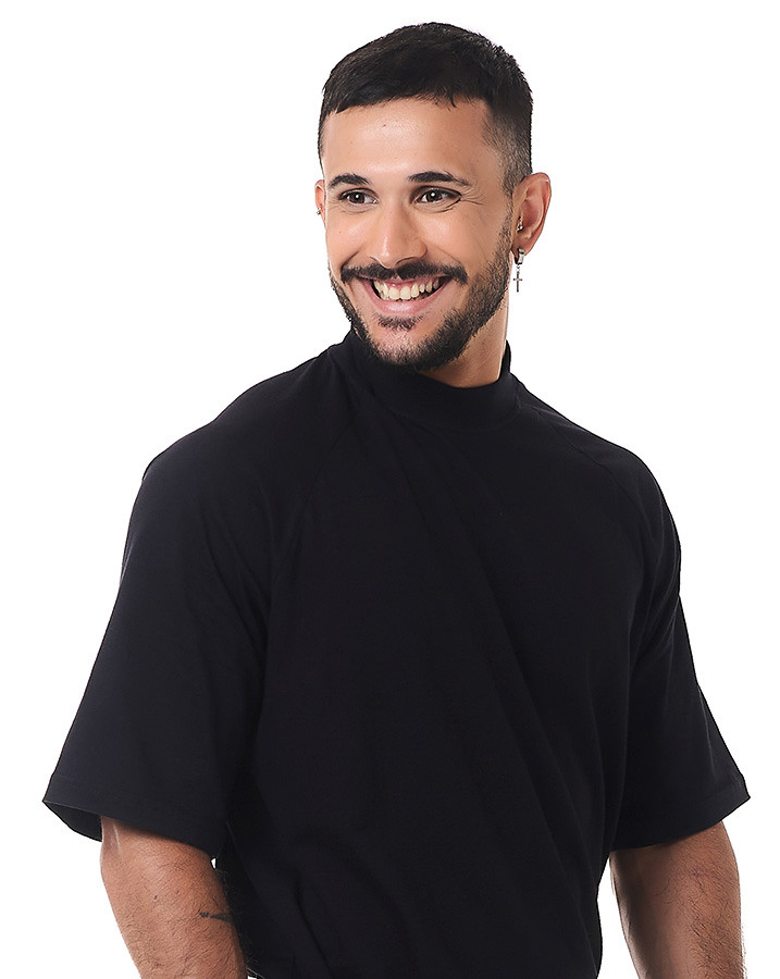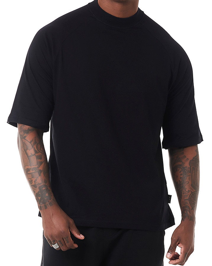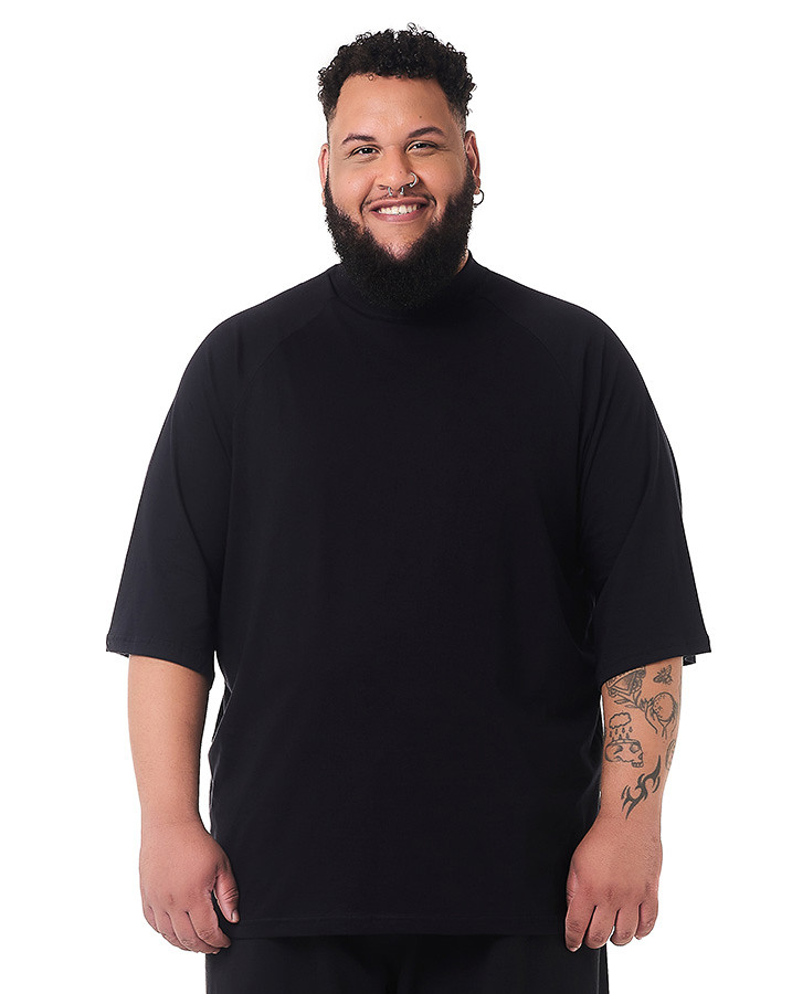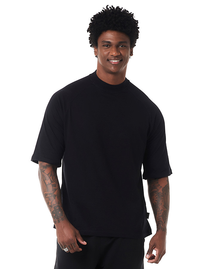O corte oversized e a manga raglan proporciona um caimento moderno e descolado, garantindo liberdade de movimento e um visual urbano único. Além disso, o destaque fica por conta da gola alta, que confere um toque de sofisticação e personalidade à camiseta.