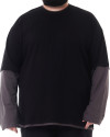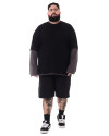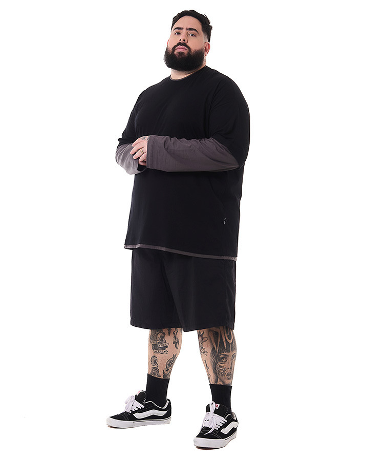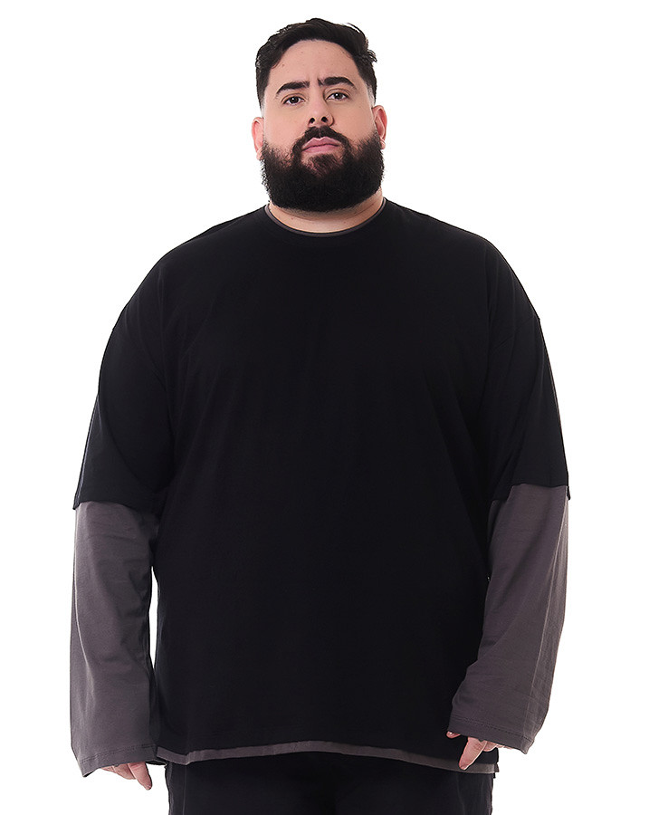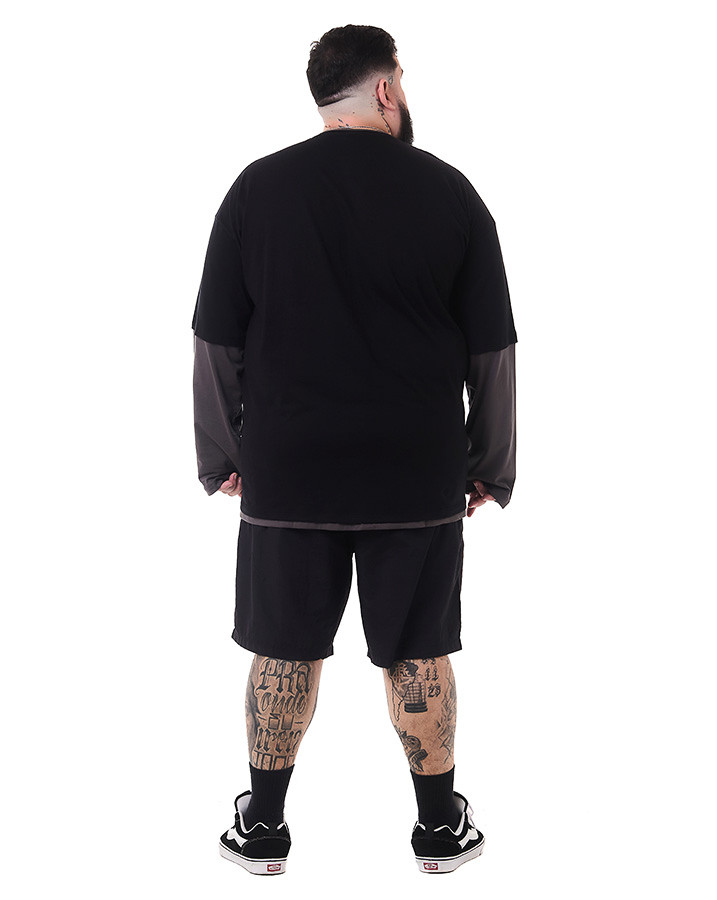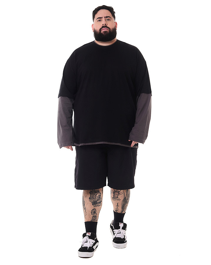 Feita com malha 100% Algodão 30.1 Fio Penteado, a Camiseta Oversized Manga Longa Long Shirt oferece um toque suave e durabilidade impressionante. Seu design inovador apresenta uma sobreposição de mangas – uma manga curta preta e uma manga longa cinza – além de duas golas, criando a ilusão de estar vestindo duas camisetas. Essa característica única adiciona profundidade e estilo ao seu look, destacando-se em qualquer ocasião.