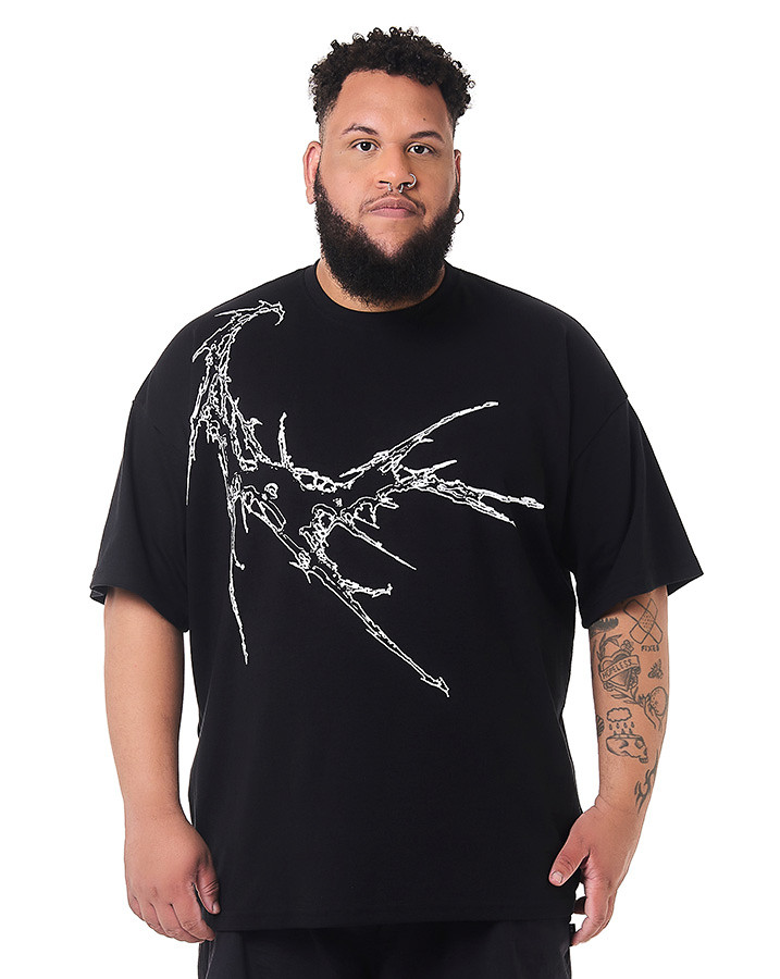 Seja para um dia casual ou para uma aventura noturna, esta camiseta é a escolha perfeita para quem deseja se destacar com confiança e autenticidade. Adicione um toque de distinção ao seu guarda-roupa com a Camiseta Oversized Neo Tribal Knulu