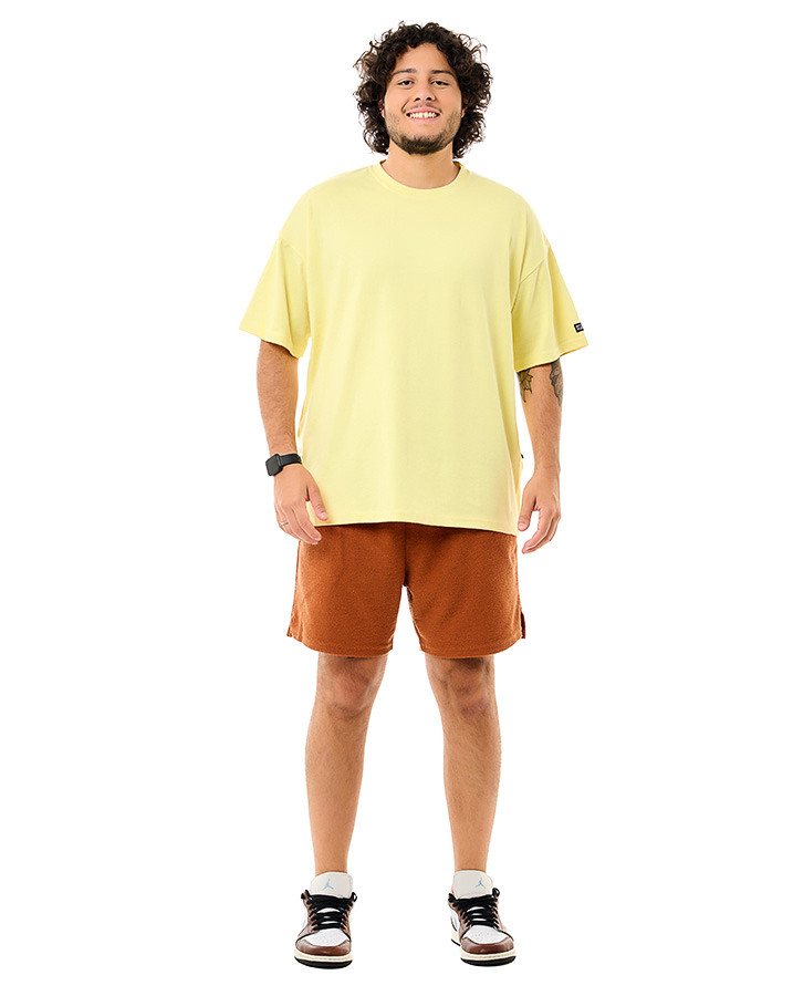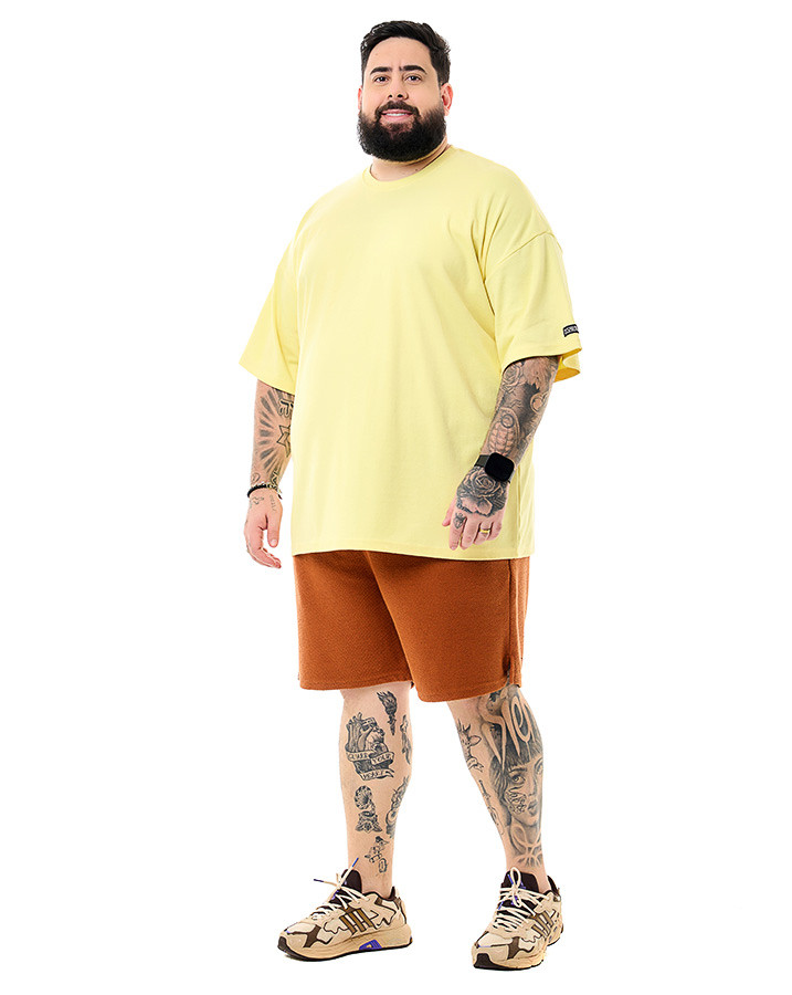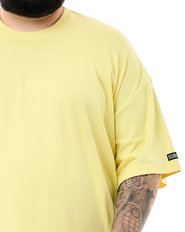 Camiseta Oversized Soft Amarelo Bebê Knulu: Experimente a incrível experiência ao vestir com nossa camiseta oversized, desenhada para quem valoriza exclusividade em cada detalhe. Com modelagem ampla, base reta e alongada, e ombros estendidos, essa peça captura a essência do verdadeiro "oversized".