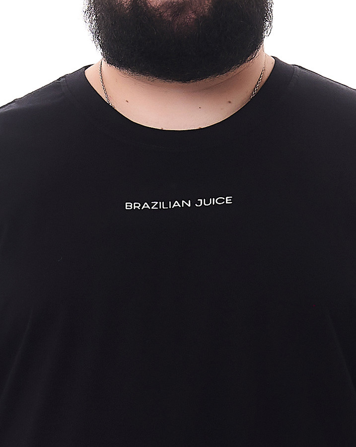 Confeccionada em malha de toque leve, favorece a respiração da pele e preserva o formato após as lavagens. O destaque fica por conta da estampa vibrante nas costas, que mescla elementos botânicos com referências retrô à cultura de verão brasileira. Na parte frontal, a inscrição discreta “Brazilian Juice” adiciona contraste e identidade.