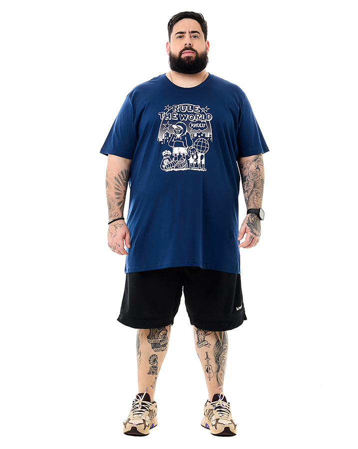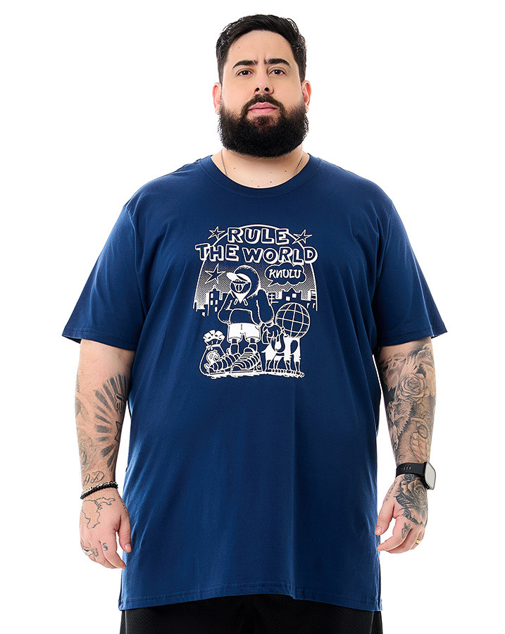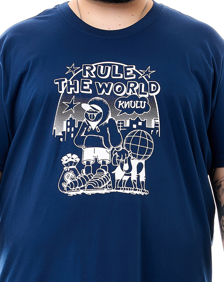 A Camiseta Classic Rule The World Azul Marinho Knulu une arte urbana e identidade visual marcante em uma proposta descontraída. Com corte tradicional e gola careca, oferece conforto para o uso diário com caimento leve e estruturado.
