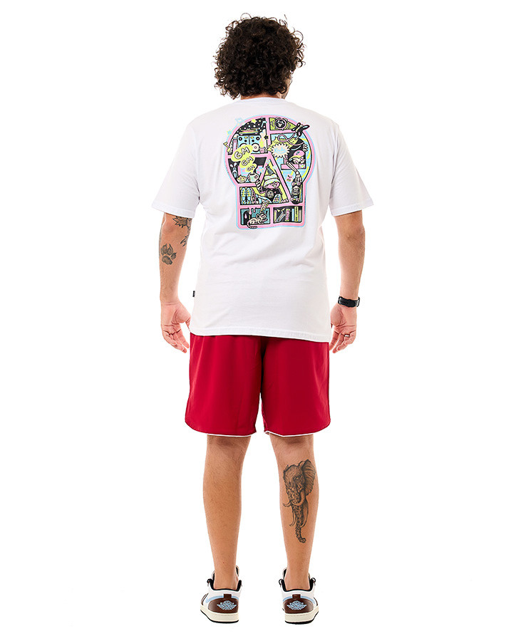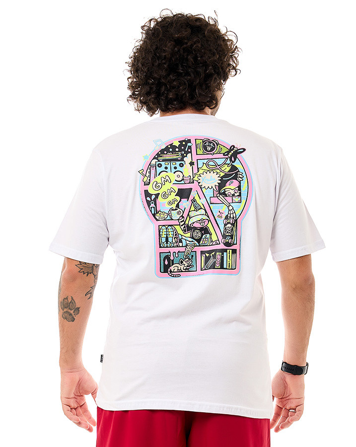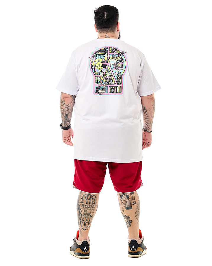 A Camiseta Classic Zen Room Branco Knulu traz uma proposta criativa e descontraída com visual inspirado em elementos da cultura pop e do estilo de vida urbano. Seu design exclusivo destaca um painel ilustrado nas costas, que remete a uma janela em forma de símbolo da paz, repleta de referências visuais coloridas.