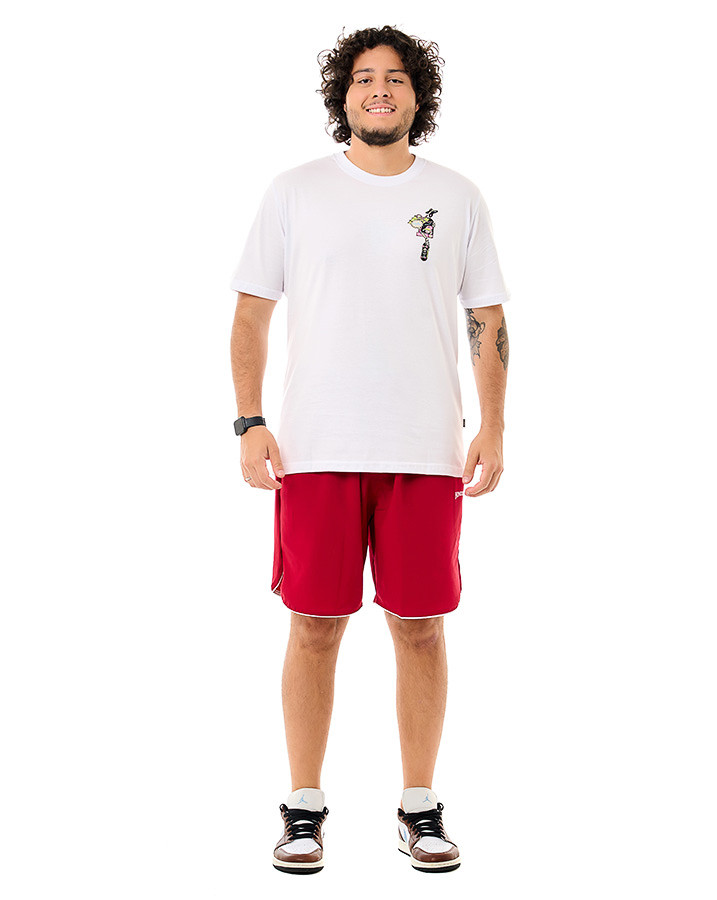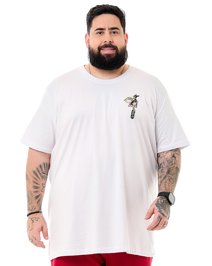A peça possui corte tradicional e gola careca, oferecendo um caimento solto e confortável. A malha tem toque macio, proporcionando sensação agradável no uso diário e durabilidade mesmo após várias lavagens.