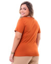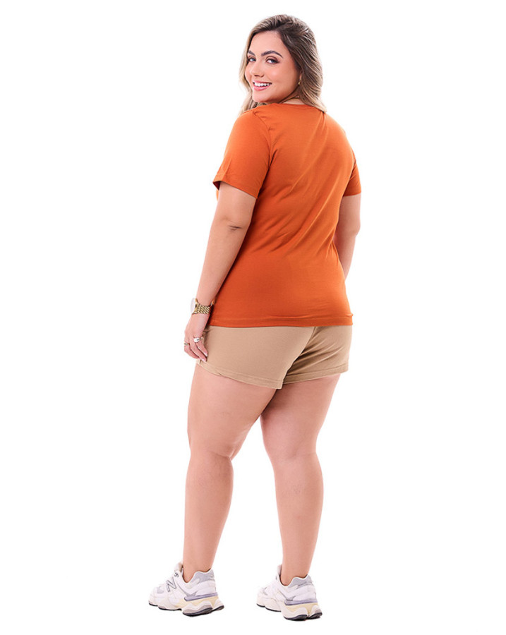 A parte de trás é lisa e o tom terracota confere modernidade, permitindo combinações versáteis com shorts, calças ou saias para looks que refletem sua personalidade com autenticidade.