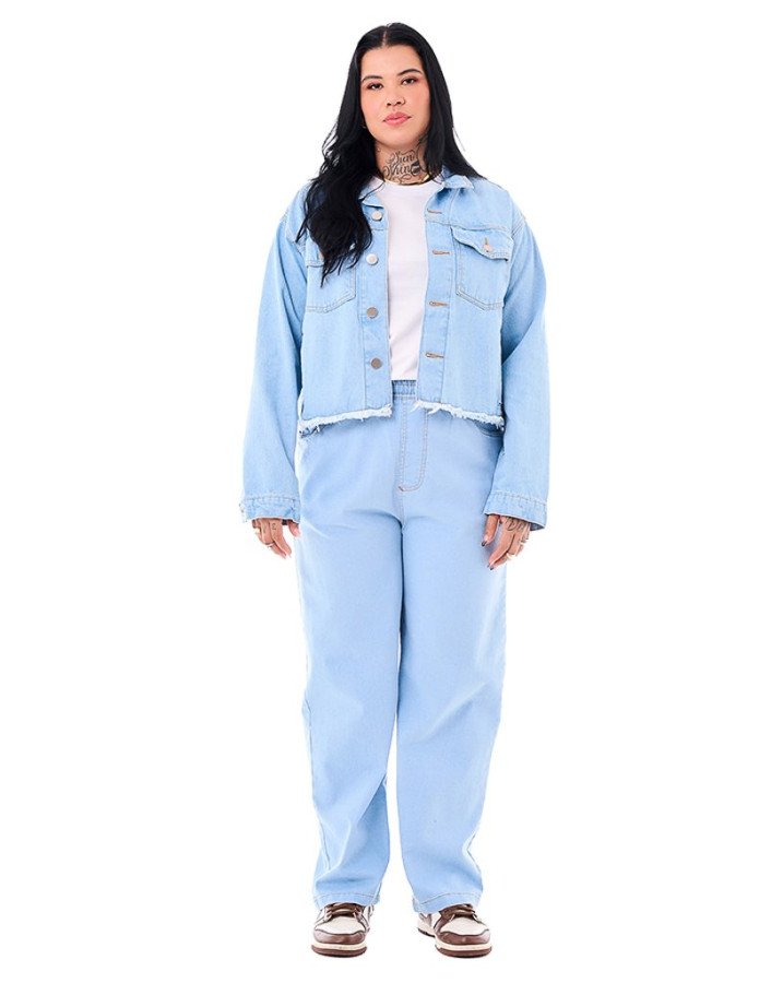 Com visual despojado e tonalidade clara, a Jaqueta Jeans Feminina Frontier Storm Azul Claro Knulu traz um design urbano e moderno, com acabamento em barra desfiada e botões metálicos que reforçam o estilo casual. O modelo possui modelagem ampla com caimento reto, bolsos frontais funcionais e gola clássica, criando uma proposta prática e versátil para o dia a dia. Confeccionada em jeans 100% algodão, oferece estrutura firme sem perder o conforto, além de toque agradável ao vestir. A textura natural do tecido garante respirabilidade e mobilidade, ideal para compor sobreposições leves em diferentes estações.
