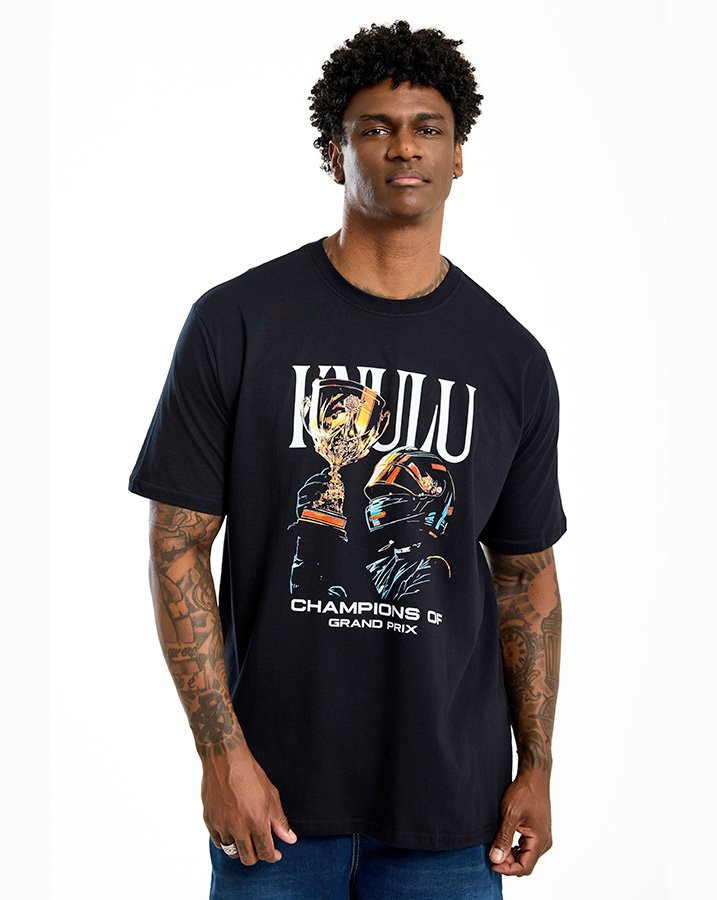 A Camiseta Classic Champions Preto Knulu traz uma homenagem ao universo das corridas, destacando atitude e conquista em uma estampa imponente feita em DTF. O visual impactante remete à celebração de um verdadeiro campeão, com riqueza de cores e detalhes que reforçam a estética esportiva.
