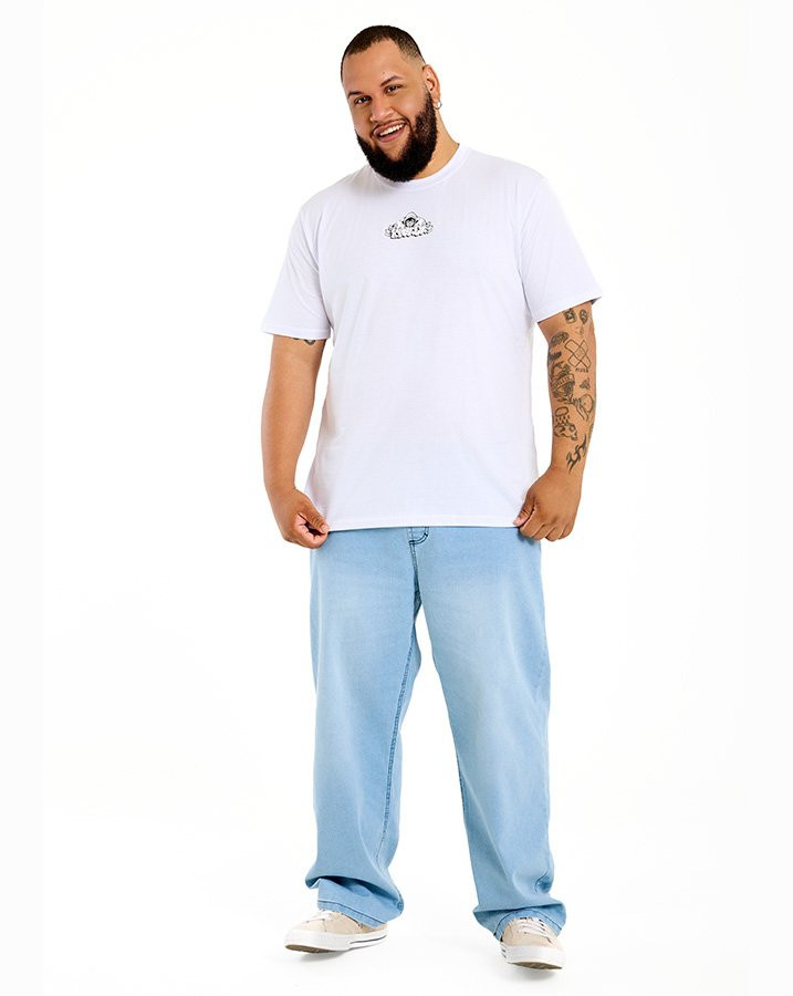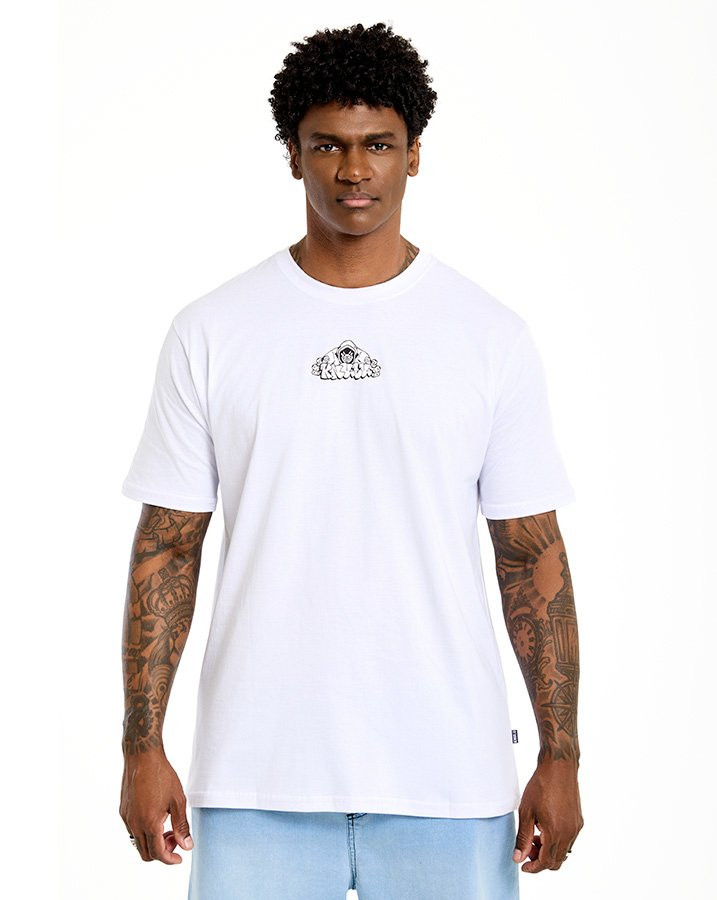 Confeccionada em malha 100% algodão, oferece toque macio e caimento clássico, ideal para o uso no dia a dia. A estampa frontal discreta equilibra o design, tornando a peça versátil e cheia de personalidade.