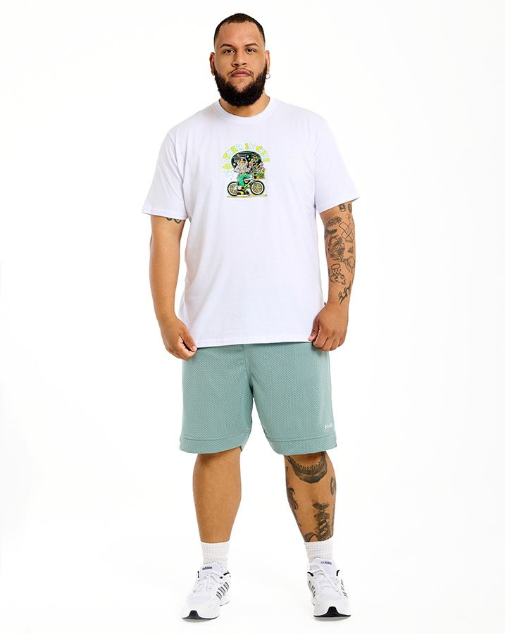 Uma escolha versátil que combina com jeans, bermudas ou calças cargo. Ideal para quem curte peças com identidade e bom humor.
