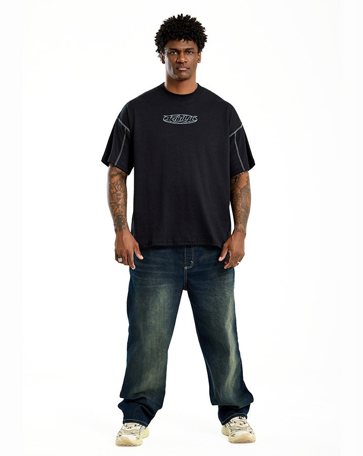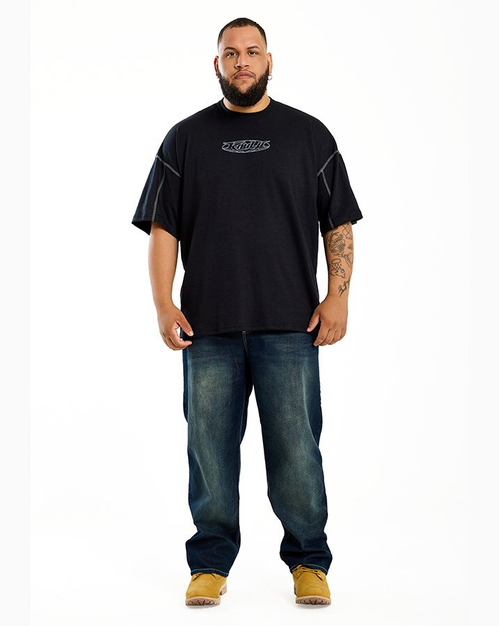 A Camiseta Oversized Colored Line Preto Knulu carrega a essência do streetwear em cada detalhe. Feita em malha mista encorpada, também conhecida como ponto jersey, ela entrega estrutura e firmeza no caimento, reforçando a proposta oversized da peça.