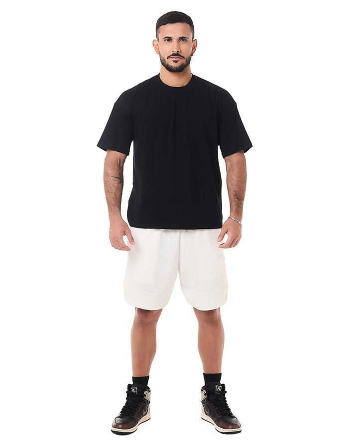 Com corte tradicional e modelagem longa, essa bermuda proporciona um caimento solto e moderno, perfeito para um visual casual e prático. A cor off white traz sofisticação e versatilidade, facilitando a combinação com diferentes peças do seu guarda-roupa. O recorte em formato de V na tonalidade branca adiciona um toque contemporâneo e estiloso, enquanto o corpo preto confere um visual clean e versátil.
