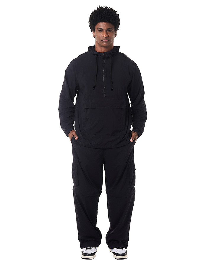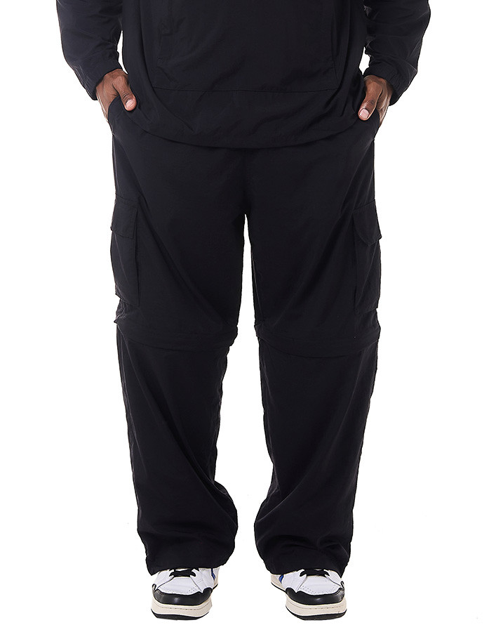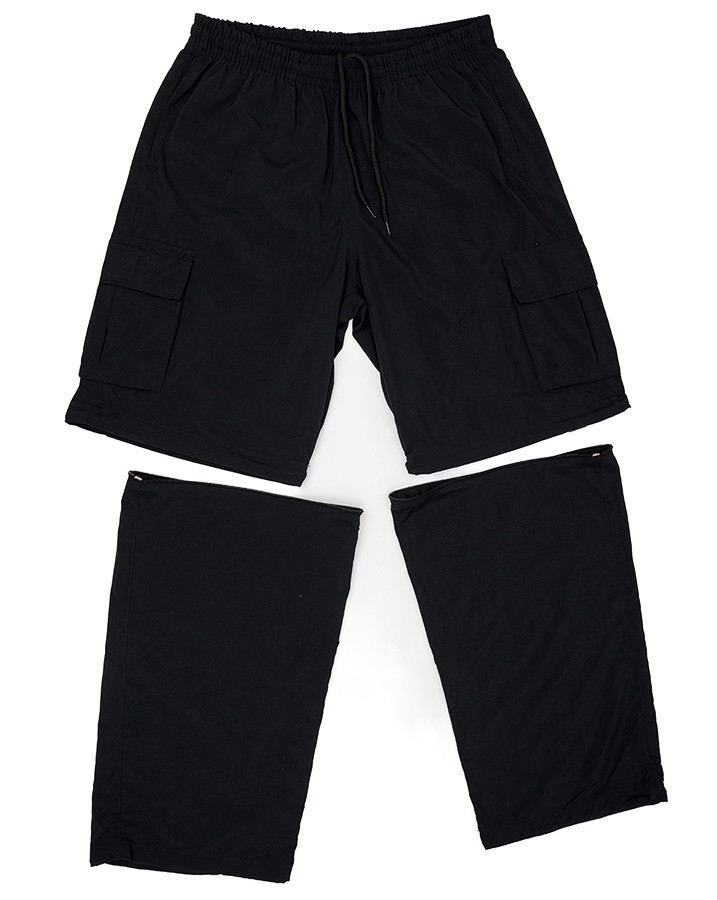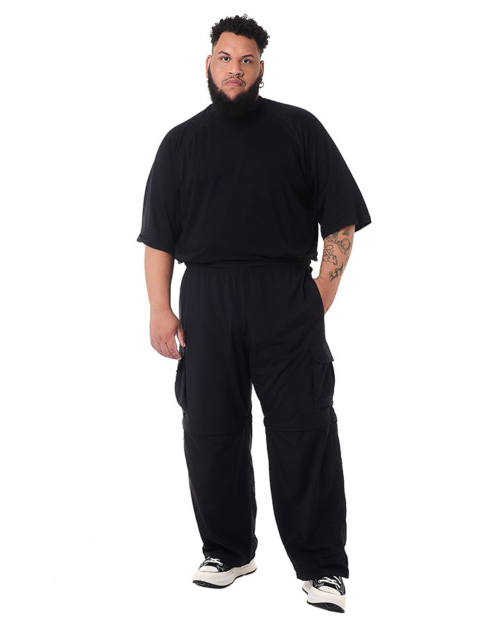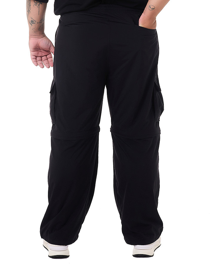 Com um corte tradicional reto cargo, a calça apresenta um design prático e funcional. Ela possui dois bolsos frontais, dois traseiros e um bolso cargo em cada lado, proporcionando bastante espaço para carregar seus itens essenciais. A grande sacada dessa calça está no fecho na perna, logo abaixo do bolso cargo: basta abrir o fecho para transformar a calça em uma bermuda, perfeita para aquelas mudanças repentinas de tempo ou para um visual mais casual.