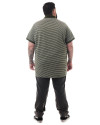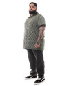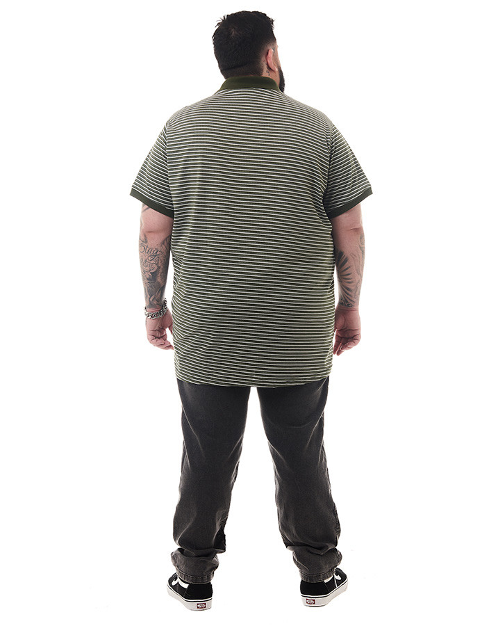A cor militar verde traz uma aura de sofisticação, enquanto os detalhes em verde nos punhos e na gola adicionam um toque de estilo distinto. O corpo apresenta pequenas listras em verde e branco, conferindo um visual moderno e dinâmico.