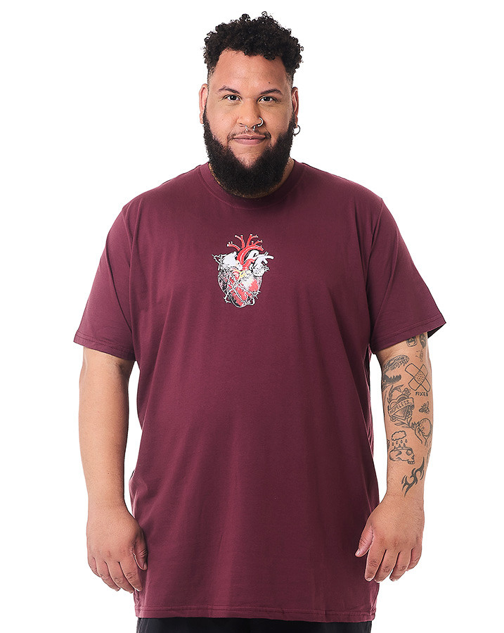 Feita com uma malha de alta qualidade, 100% algodão penteado, ela oferece conforto e um ajuste perfeito para qualquer ocasião. Seu corte tradicional garante um visual clássico, enquanto a estampa em silk screen de um coração no estilo realista no centro da camiseta adiciona um toque único.