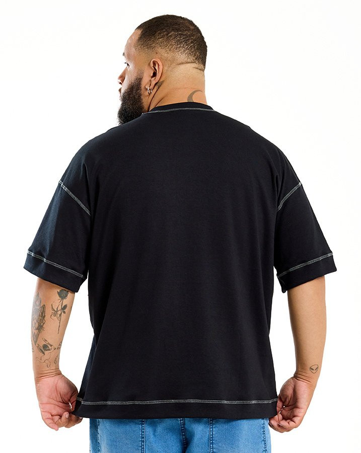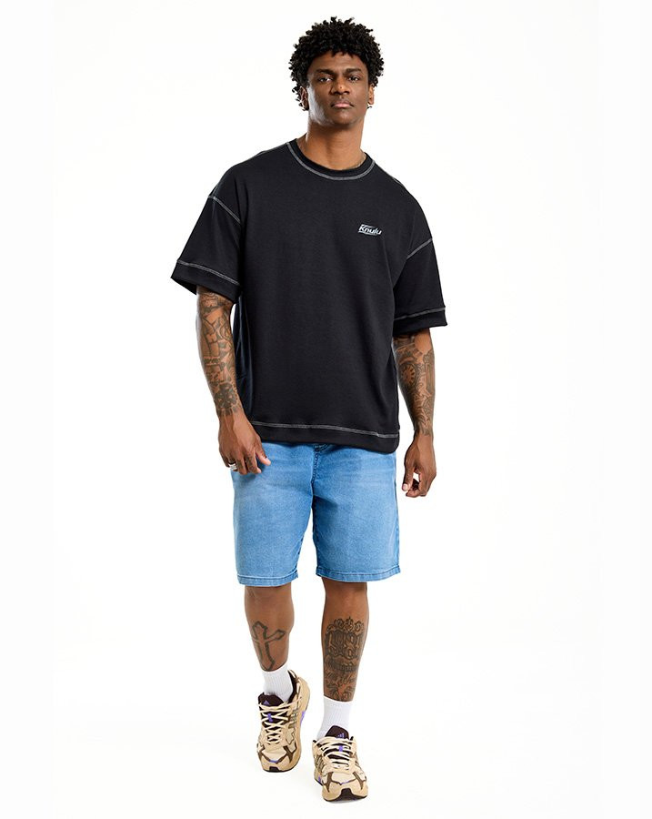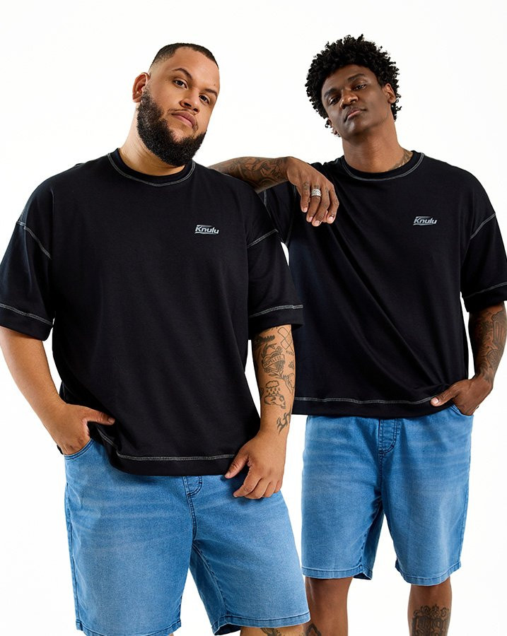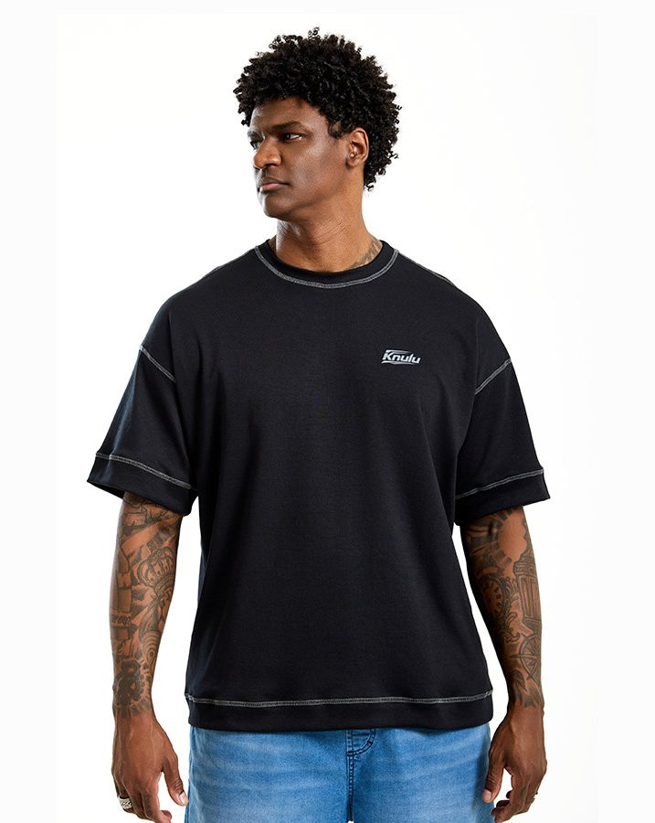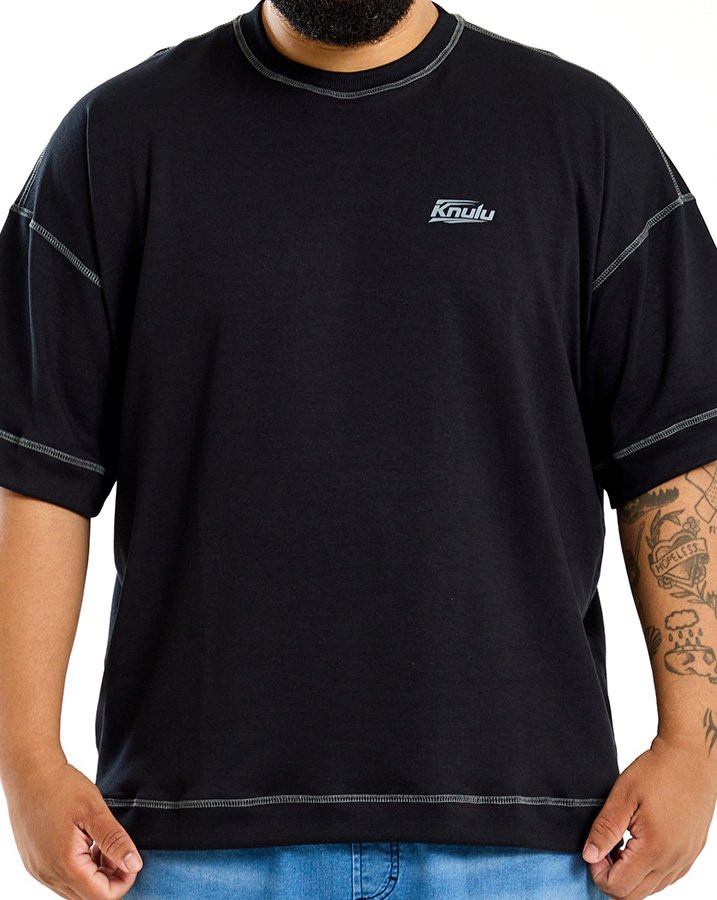 As costuras trançadas em contraste reforçam o visual contemporâneo e dão destaque à modelagem ampla. O logo frontal “Knulu” em silk screen adiciona identidade à peça com um toque minimalista e marcante.