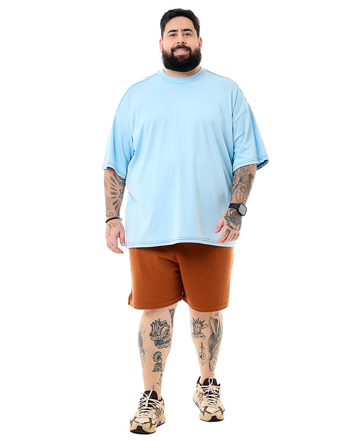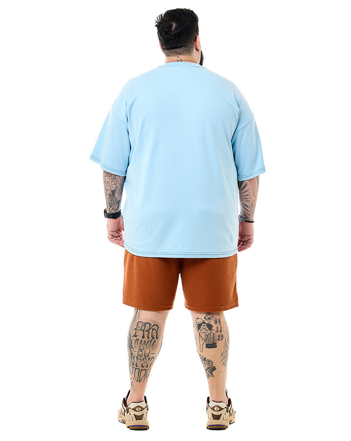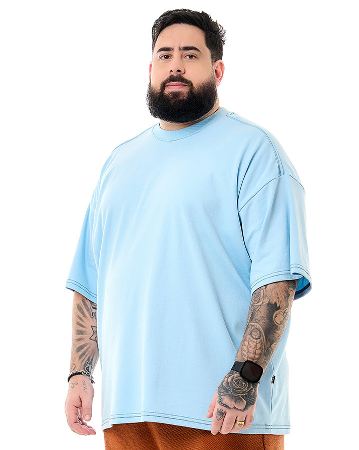 Apresentamos a Camiseta Oversized Boxy Shoulder Line Azul Bebê Knulu, onde design minimalista, conforto premium e identidade se unem. Feita em malha premium de fio penteado 30.1 (50% algodão e 50% poliéster), proporciona um visual amplo e um caimento impecável.