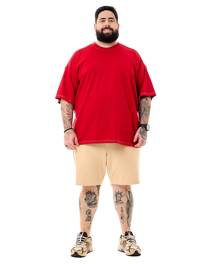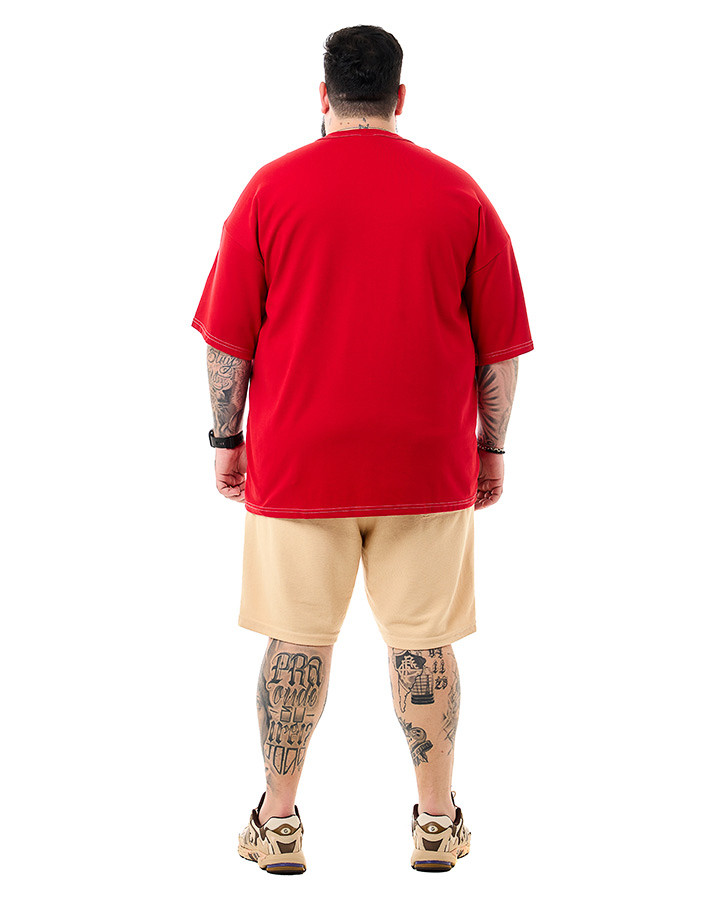 Conheça a Camiseta Oversized Boxy Shoulder Line Vermelho Knulu, onde design minimalista, conforto premium e identidade se encontram. Confeccionada em malhão premium de fio penteado 30.1 (50% algodão e 50% poliéster) com gramatura de 260 g/m², ela oferece um visual amplo e um caimento perfeito.