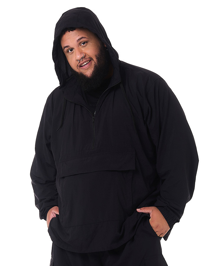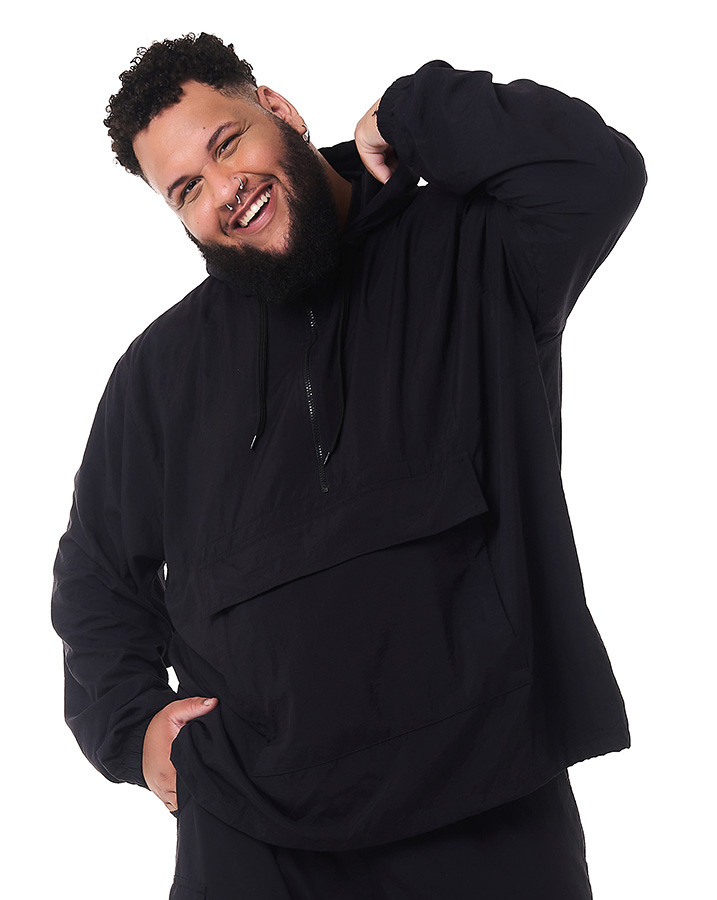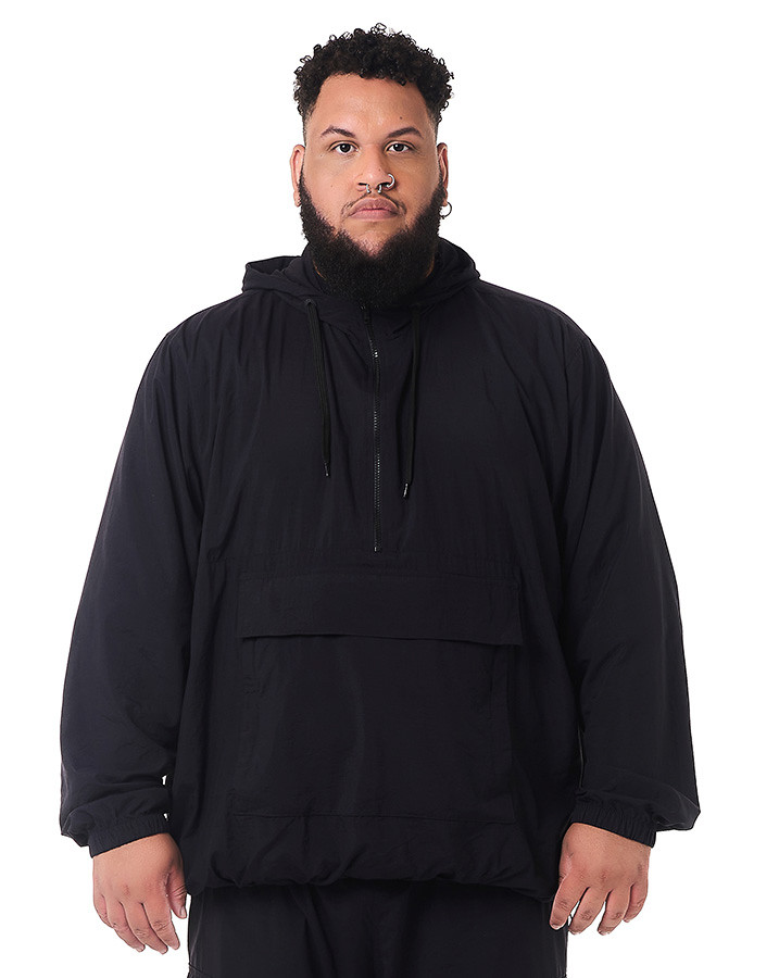 Seu corte tradicional anorak proporciona um ajuste prático e moderno, enquanto os dois bolsos frontais e o bolso maior no meio do casaco adicionam funcionalidade. A grande inovação desta peça está na capacidade de se transformar em uma pochete: basta dobrar a jaqueta, deixando o bolso frontal livre, e virar o casaco ao contrário, guardando-o dentro desse bolso.