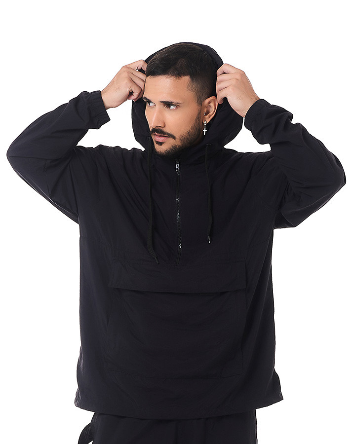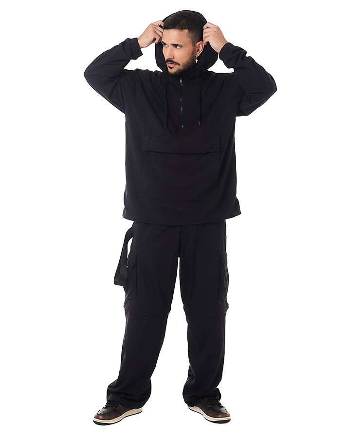 Com a Jaqueta Corta-Vento Tactical Vira Pochete Preto Knulu, você está sempre preparado para qualquer situação.