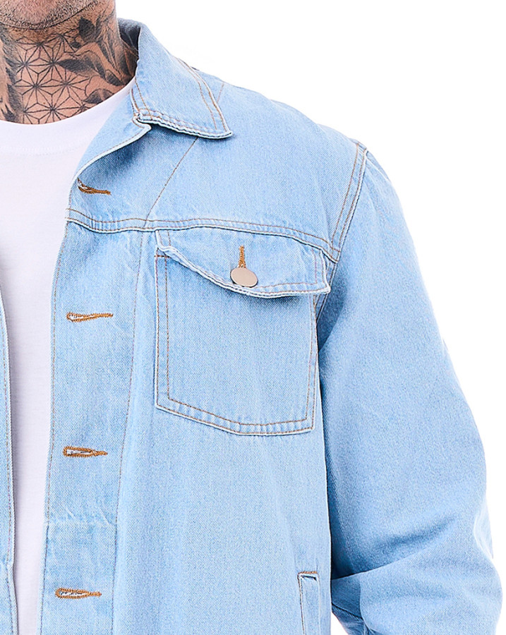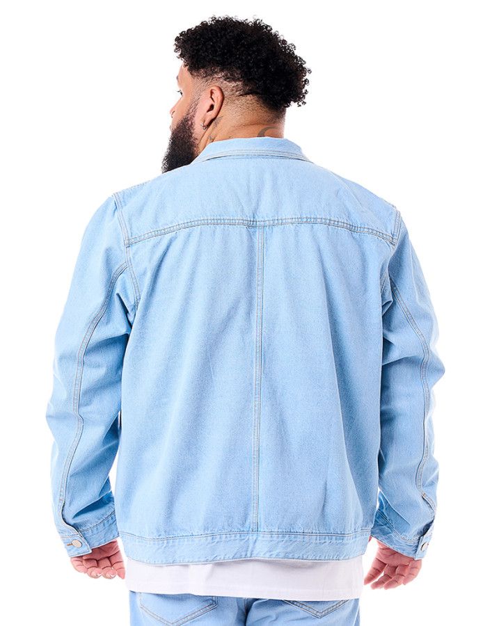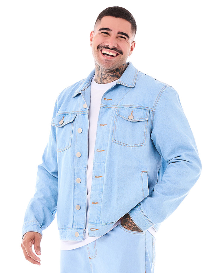 A Jaqueta Jeans Masculina Frontier Storm Azul Claro Knulu traz um design clássico e atemporal, com visual clean e versátil que transita com facilidade por diferentes estilos. A tonalidade azul claro destaca o visual leve e moderno, perfeito para composições casuais ou urbanas.