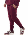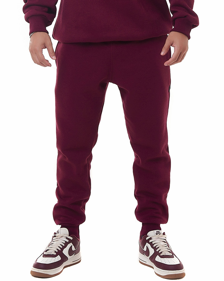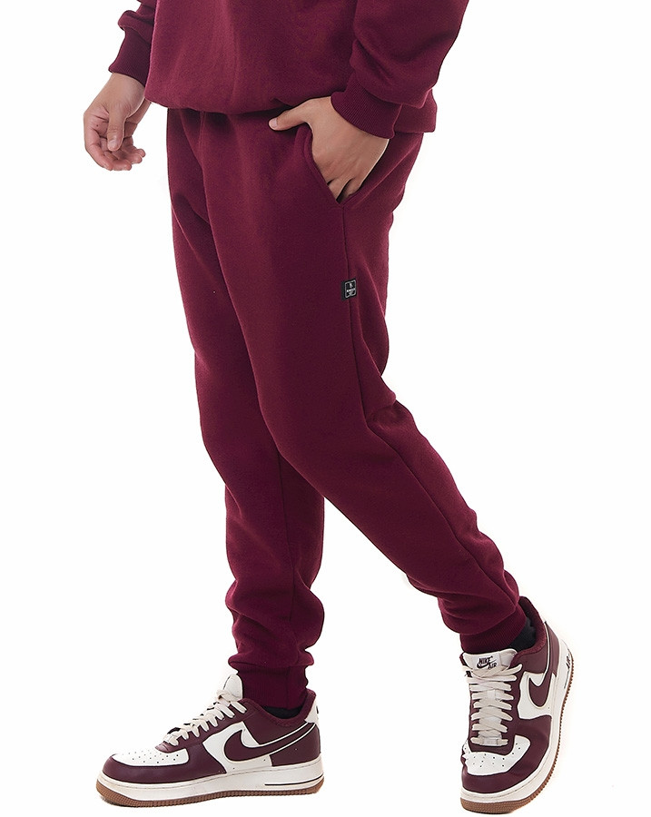 É uma calça jogger clássica, lisa, possui cós com elástico e ajuste por cordão, dois práticos bolsos laterais, um bolso traseiro embutido e acabamento da calça com punho sanfonado.