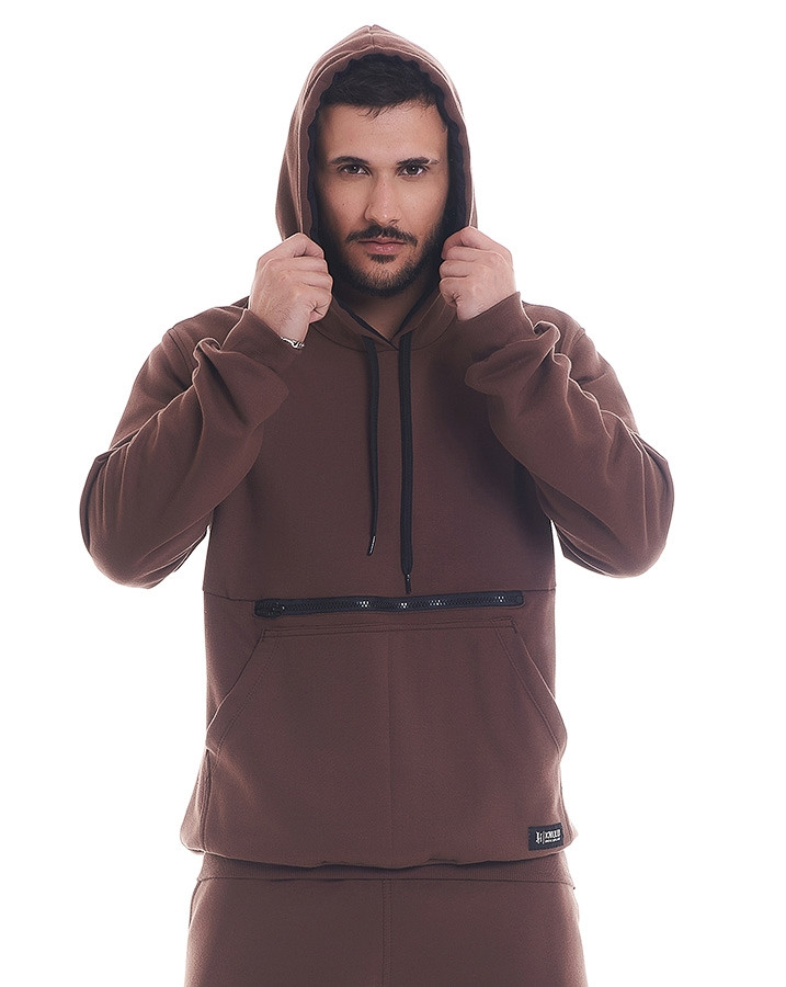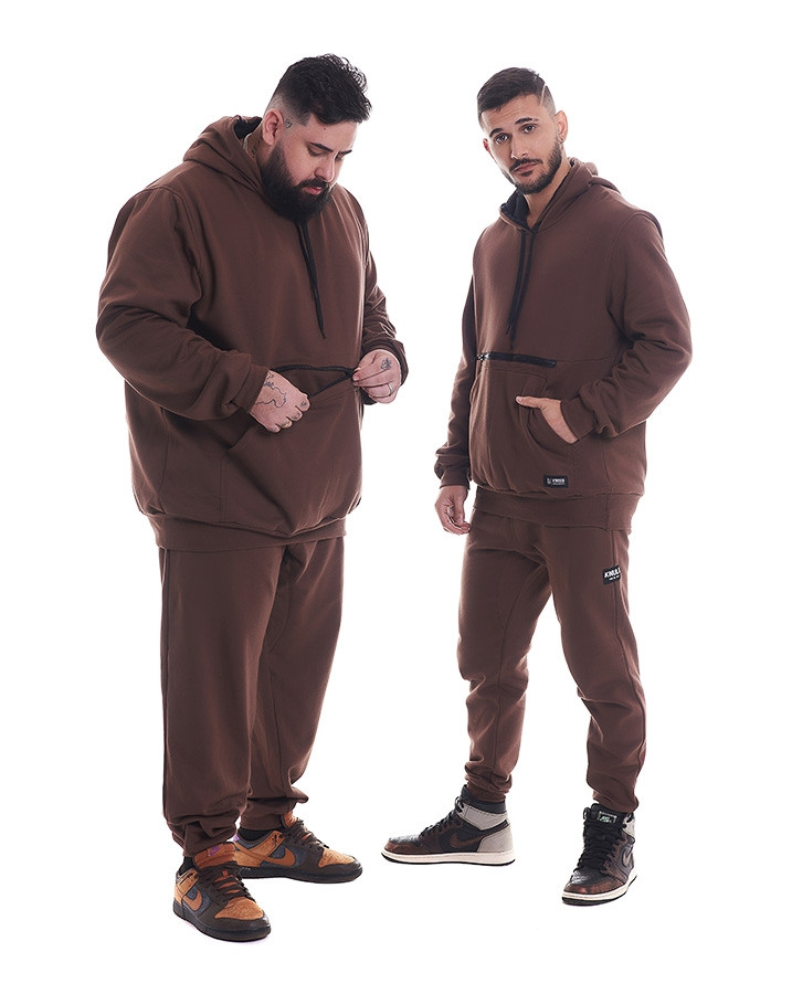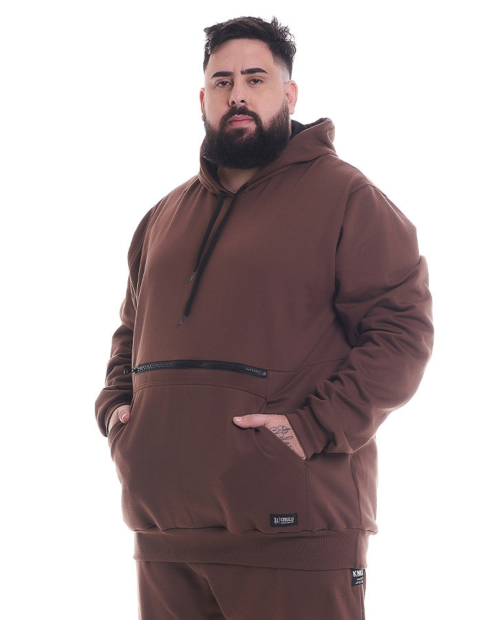 Casaco Canguru Moletom Essentials Pocket Marrom Knulu foi criado a partir de moletom flanelado premium, com capuz ajustável por cadarço e punho de ribana.