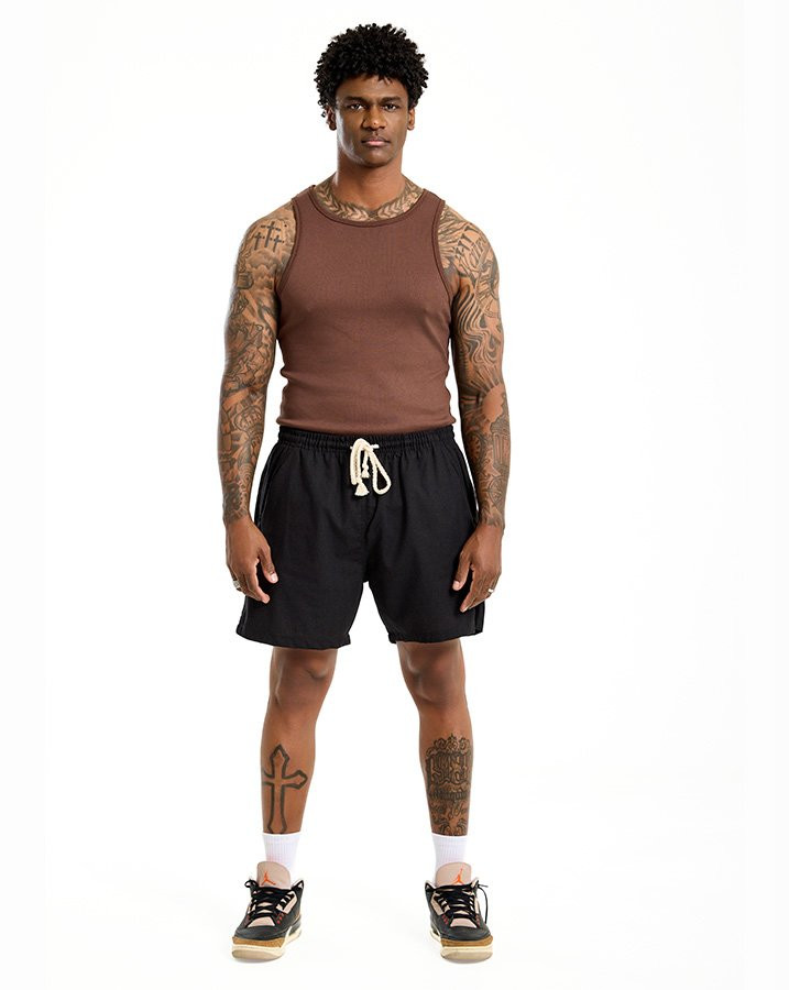 Na cor marrom terroso, entrega personalidade e versatilidade para o dia a dia. Uma peça básica que acompanha diferentes composições e se destaca pela textura discreta e toque suave. Essencial para dias quentes com atitude urbana.