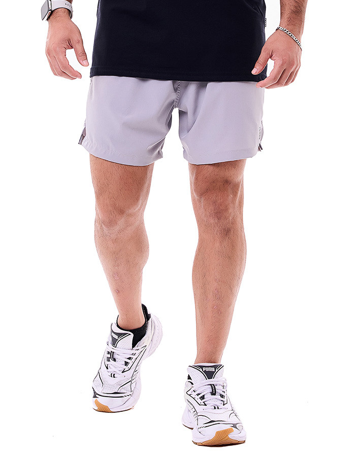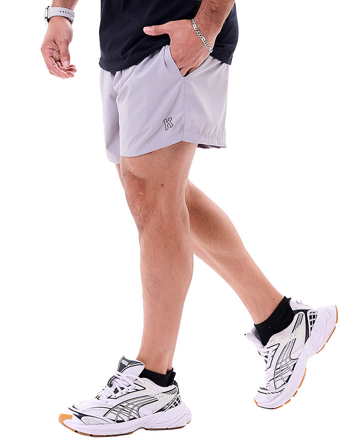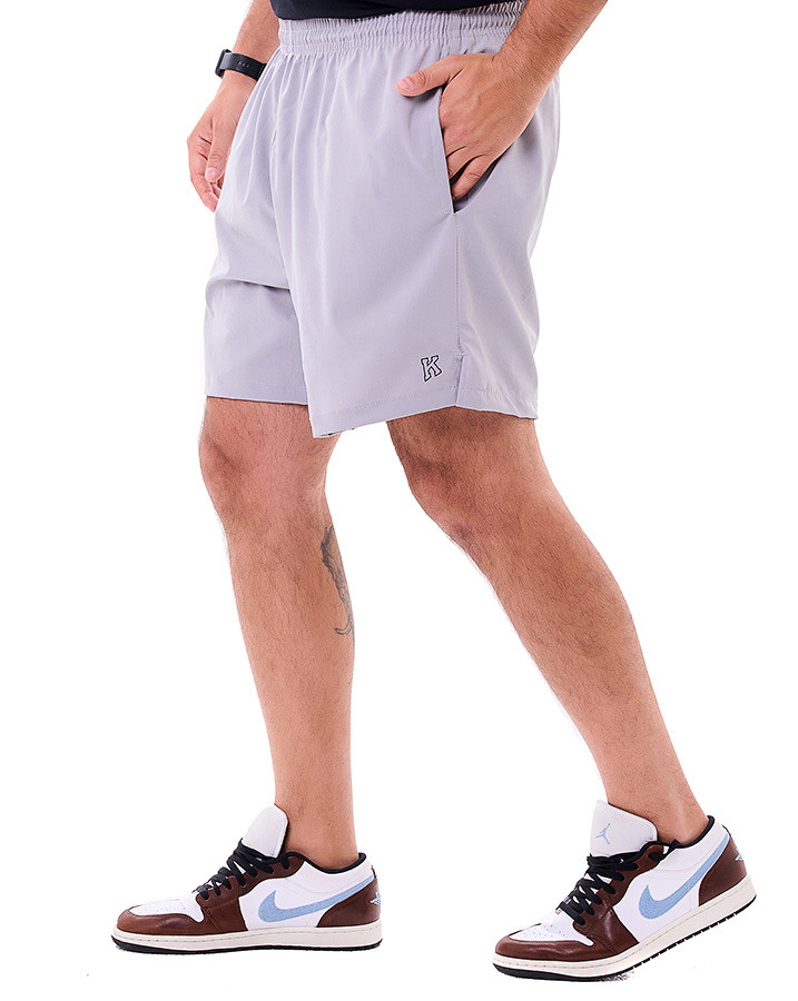 O Short Sport Beach Cinza Prata Knulu é perfeito para treinos, corridas ou momentos casuais, combinando facilmente com camisetas e regatas para um visual leve e cheio de personalidade.