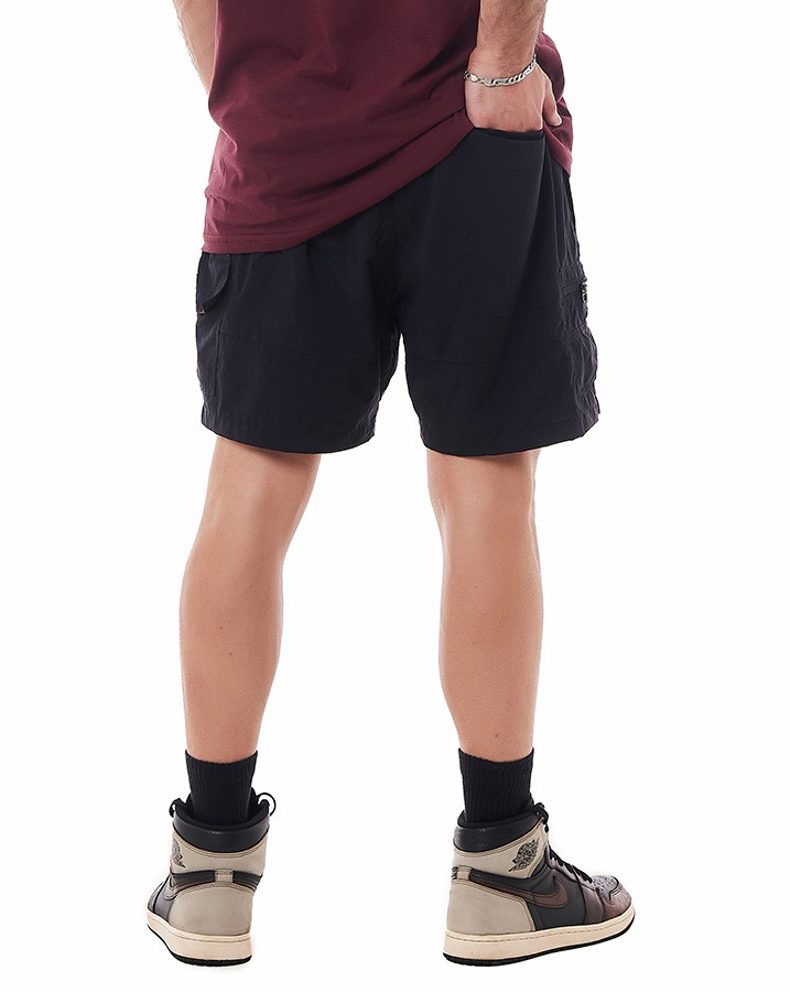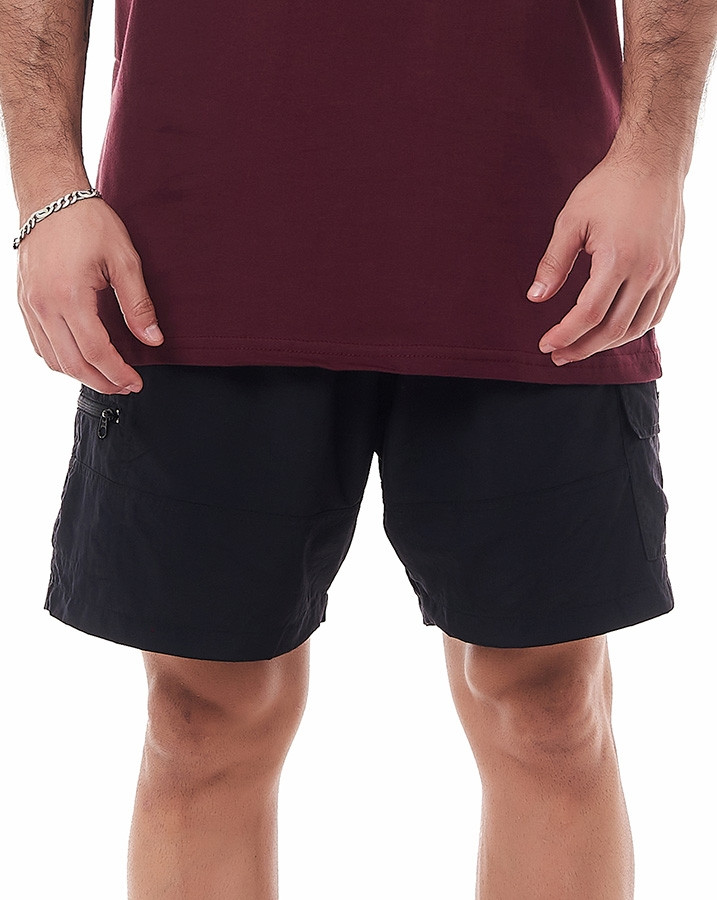 O cós possui elástico com ajuste feito por cordão que garante um encaixe personalizado, proporcionando conforto durante todo o dia. Com bolsos frontais laterais, um bolso traseiro e bolsos cargo do lado esquerdo e bolso lateral com zíper do lado direito, este shorts oferece praticidade para carregar seus itens essenciais com facilidade, mantendo tudo ao seu alcance.