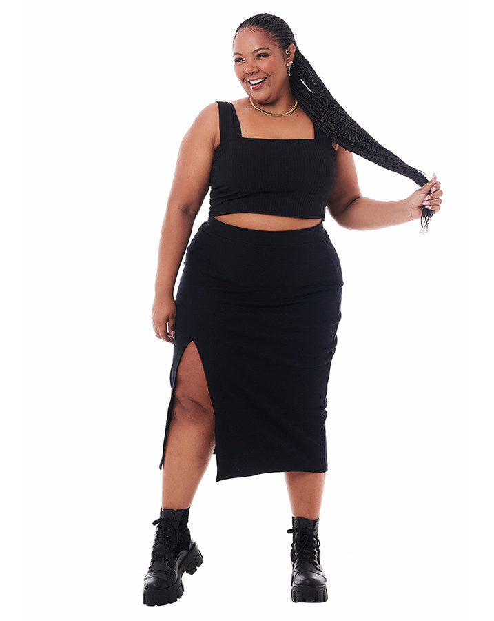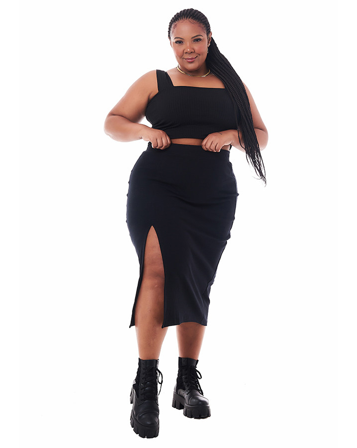 A Saia Midi Canelada Fenda é mais do que uma peça de roupa, é uma expressão de estilo e conforto. Com um corte tradicional e confeccionada em malha de alta qualidade (97% algodão e 03% elastano), essa saia oferece não apenas um visual elegante, mas também um ajuste perfeito que abraça a diversidade de corpos.