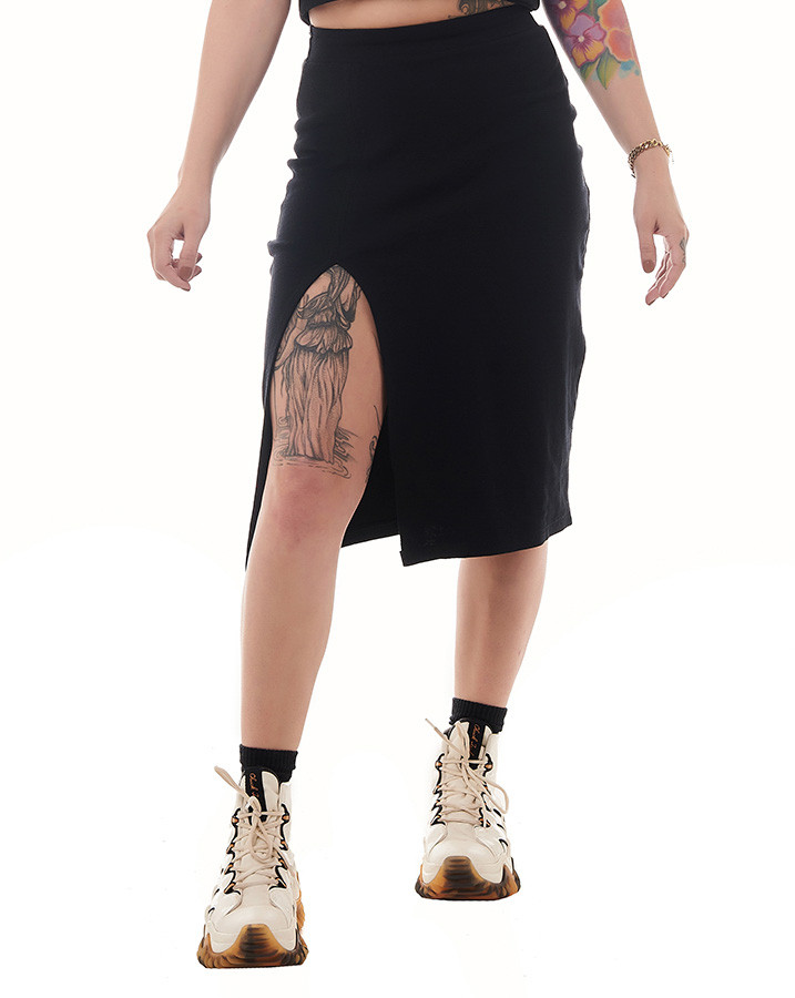 Invista em uma saia que une moda e conforto de forma equilibrada. Adquira a Saia Midi Canelada Fenda e faça uma escolha que reflete seu estilo autêntico. Transforme seu guarda-roupa com essa peça exclusiva da Knulu!