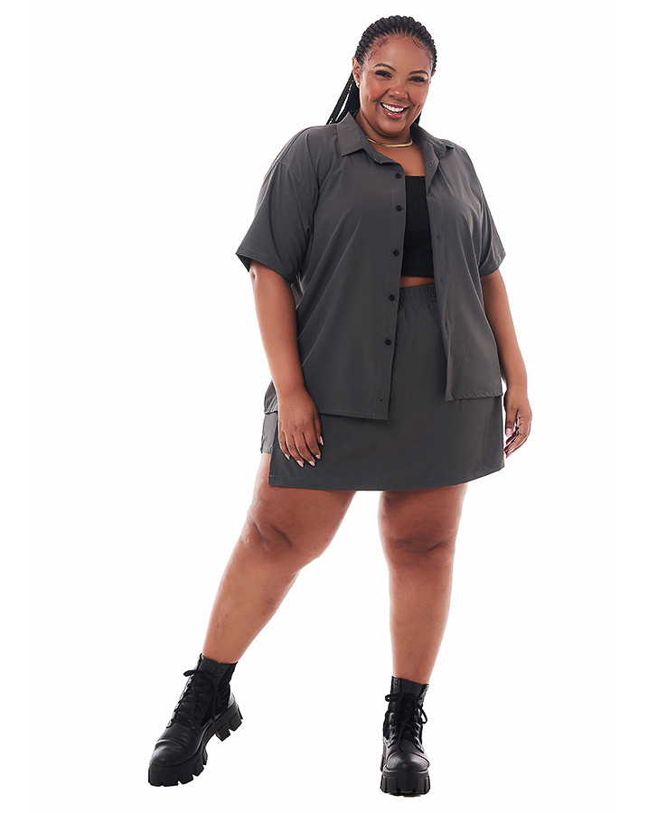 Apresentando uma gola com colarinho e 5 botões, esta camisa adiciona um toque de sofisticação ao seu look casual. Além disso, é a combinação perfeita com o Short Saia Feminino Knulu, criando um conjunto versátil e estiloso para diversas ocasiões.