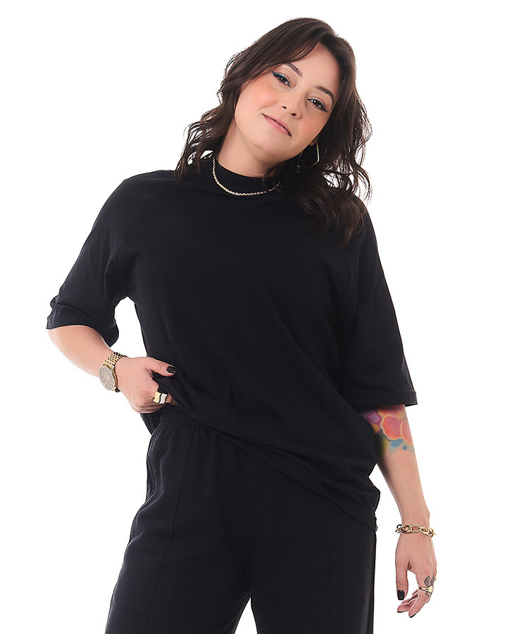 Se você busca informação de moda, a Camiseta Oversized Gola Alta Basic Preto Knulu é a escolha ideal para você. Adquira já a sua e destaque-se com um visual único e cheio de personalidade.