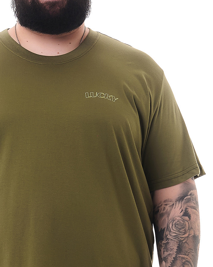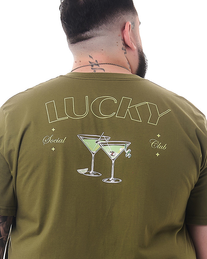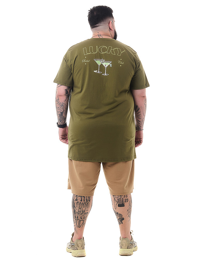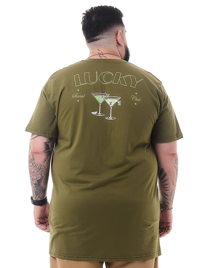 Confeccionada em malha com toque suave, entrega leveza no uso diário e durabilidade na rotina urbana. O destaque fica por conta da estampa localizada nas costas, com a temática “Lucky Social Club”, e reforço gráfico sutil no peito, trazendo equilíbrio entre ousadia e minimalismo.